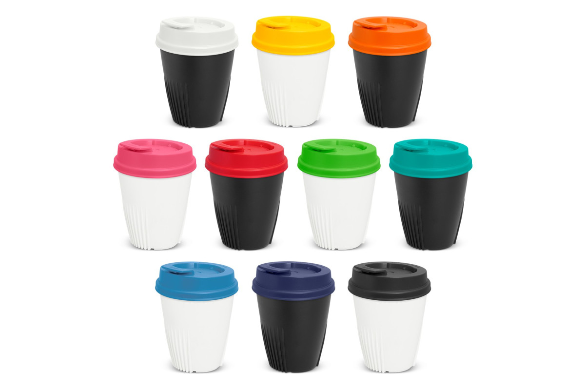 Designed to reduce waste caused by single-use cups and lids, IdealCup is the first reusable coffee cup to be conceptualised and manufactured in New Zealand. This 355ml cup is manufactured from BPA-free polypropylene and features ergonomic fins around the cup to disperse heat, allowing the cup to be carried comfortably on the go. IdealCup's secure lid is manufactured from BPA-free polyethylene and sports a smart rotating sipper plug to ensure there are no leaks or spills. IdealCup is proud to have achieved the rigorous Environmental Choice New Zealand (ECNZ) tick of approval for their reusable cup - one of only two manufacturers in New Zealand to be granted the certification. Both the cup and lid use plastics that are made in New Zealand. IdealCup has a strong ethos surrounding their product, using effective product stewardship to ensure the IdealCup creates as little waste as possible. While each IdealCup is designed for a lifetime of reuse, every IdealCup can be returned to IdealCup HQ at the end of its life to be ground down and repurposed into new IdealCup products. The cup and lid can be mixed and matched in any colour combination from the available colours at no extra cost. Up to five different colour combinations are included in the price and more are available for an additional charge. The IdealCup logo is moulded into the lid and the base of the cup. Please note that this product cannot be supplied unbranded or without the IdealCup branding. Handwashing is recommended for this product.