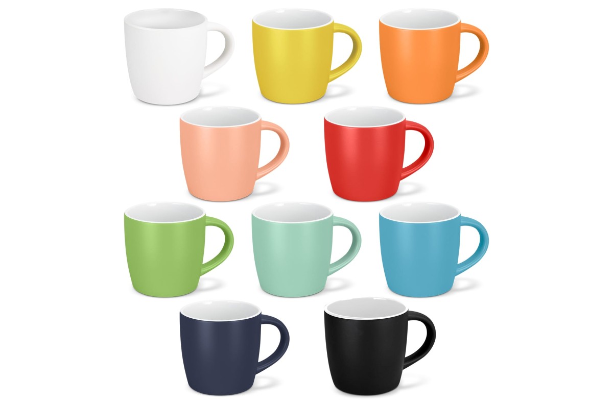 The Mocha is a modern 330ml coffee mug available in a range of fashion colours to suit any style. Featuring a matte glazed outer with a white gloss glazed inner, it offers a sleek and contemporary look. The comfortable handle ensures a secure grip, making it perfect for enjoying your favourite hot beverages. Packaged in an individual natural gift box, this mug makes an ideal gift for coffee lovers. This product is not dishwasher safe and handwashing is recommended. Features: * Modern 330ml coffee mug available in a range of fashion colours * Matte glazed outer, gloss glazed inner * Comfortable handle * Optional gift box sleeve available at an additional cost * Presentation: Natural gift box