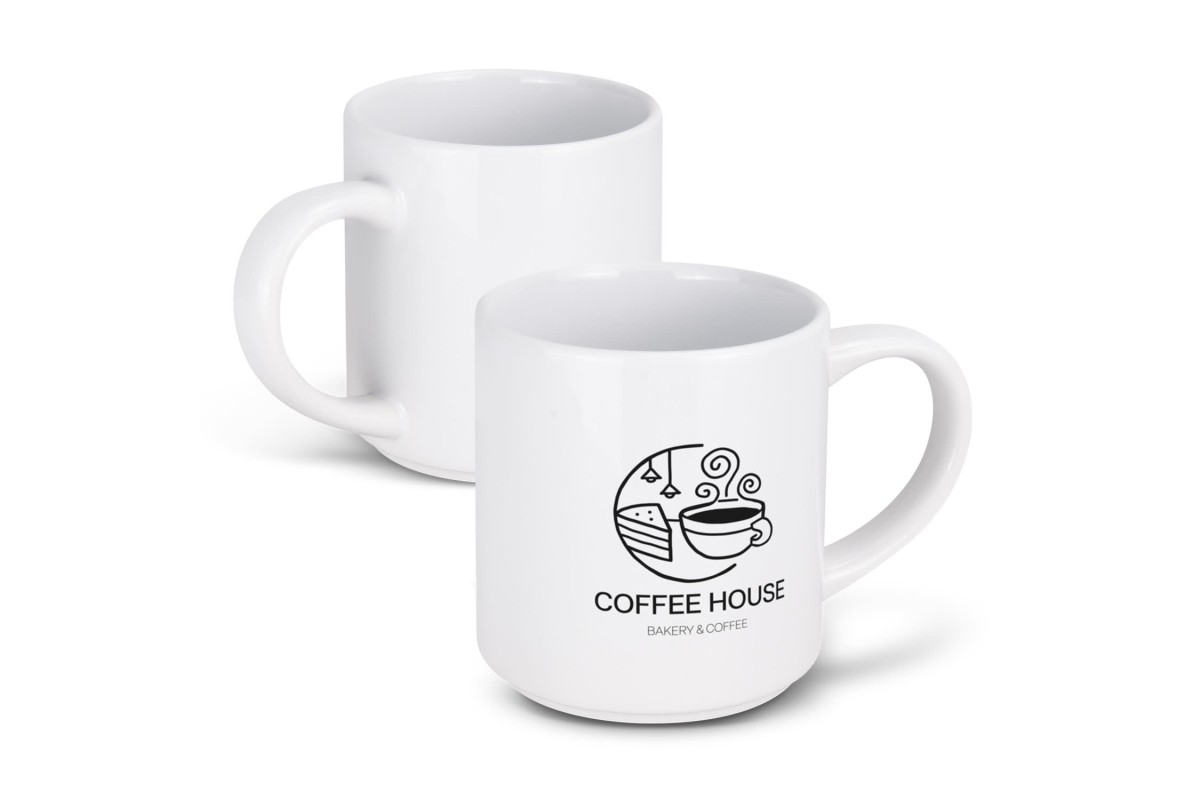 This 375ml stackable ceramic coffee mug features a sleek and smooth gloss glazed finish offering a sense of style and comfort whilst enjoying a hot brew. The stackable design is perfect for space saving, allowing for neat and organised storage. Neva is the ideal promotional or corporate gift and is presented in a natural gift box.