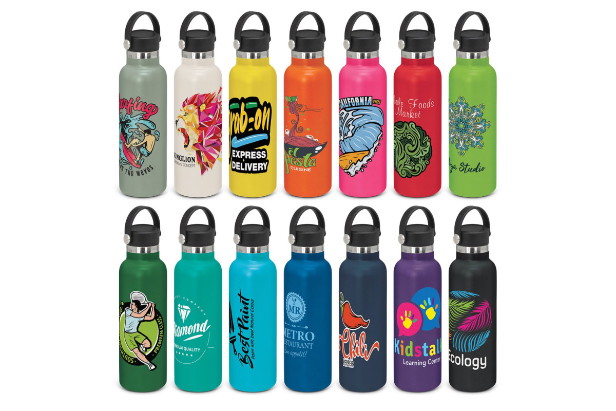 Classic 650ml double wall, vacuum insulated stainless steel drink bottle which has an extremely durable powder coated matte finish. It will keep drinks cold for 24 hours or hot for up to 12 hours and offers a carry lid for easy transportation. It is BPA-free and laser engraves to a shiny steel finish. Nomad is nicely presented in a black gift box or an optional gift tube. This product is not dishwasher safe and handwashing is recommended.