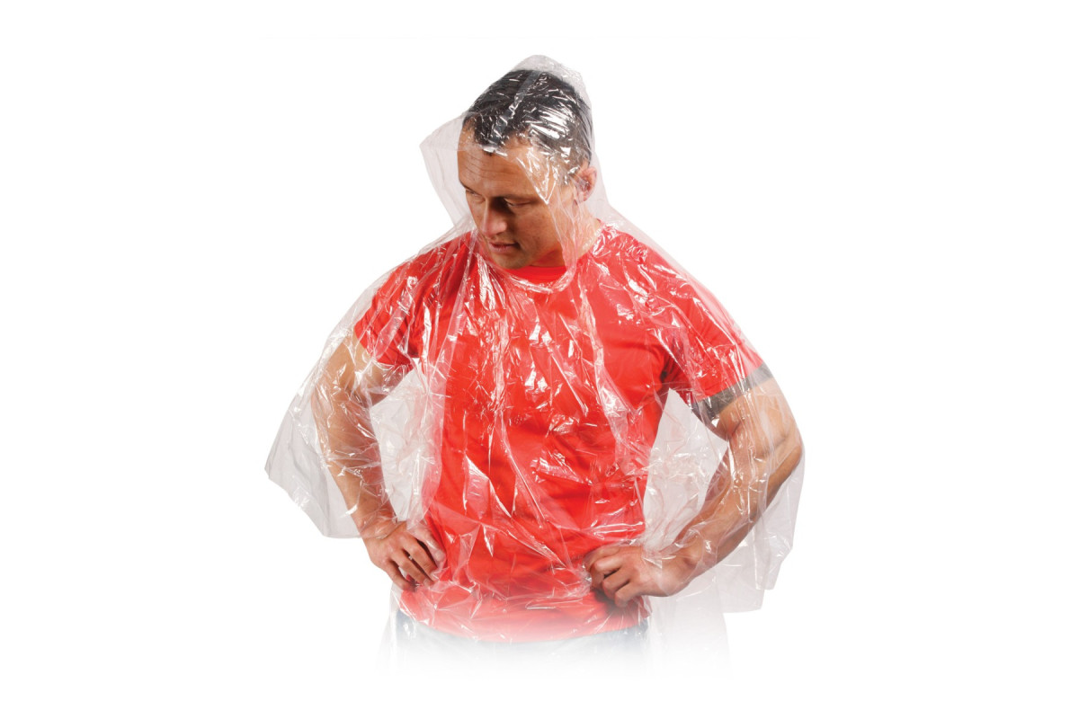 Water-resistant emergency raincoat with a hood which is supplied folded in a compact polybag. Branding is on the polybag with a digital label which can be printed in spot colours or stunning full colour.
