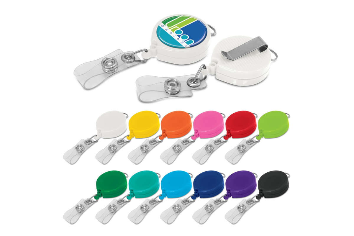 Retractable ID holder with a reliable steel spring and a standard dome attachment for holding plastic ID card holders. It has a pocket clip on the reverse and a split ring on the top for attaching it to a lanyard. Lanyards and clear vinyl ID holders are available on request. Features: * Retractable ID holder with reliable steel spring * Dome attachment for holding plastic ID card holders