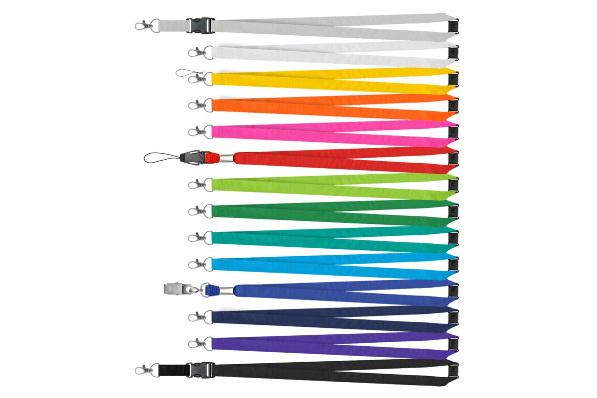 Build your own lanyard in three easy steps. Select one of the four polyester fabric sizes then choose the lanyard colour from the standard colour palette and finally choose the attachments. To simplify ordering the attachments you can choose our standard attachment configuration which includes a single metal clip and a safety clip or add any of our optional extra attachments as required. PMS colours are available on request for a minimum of 500pcs. PMS colour matching is approximate. A production lead time of 20 working days applies to this product by air freight and larger orders can be sea freighted on request to reduce the freight cost.