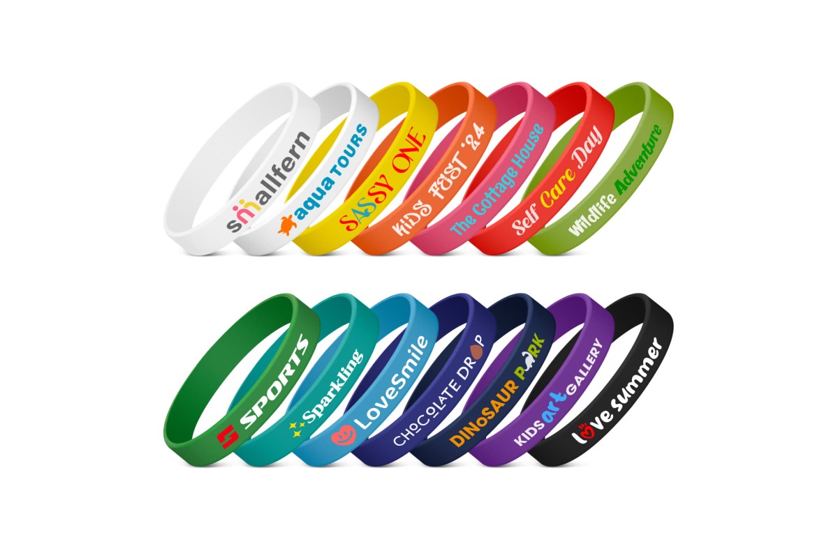 Silicone wrist bands have many uses and are ideal for fundraising, awareness campaigns, promotion and as admission bracelets for events. There are 14 standard colours and PMS colours are available on request. The wrist bands are branded with screen printing and one size fits most. They can be supplied in an optional polybag with or without a full colour label. A production lead time of 20 working days applies to this product by air freight.