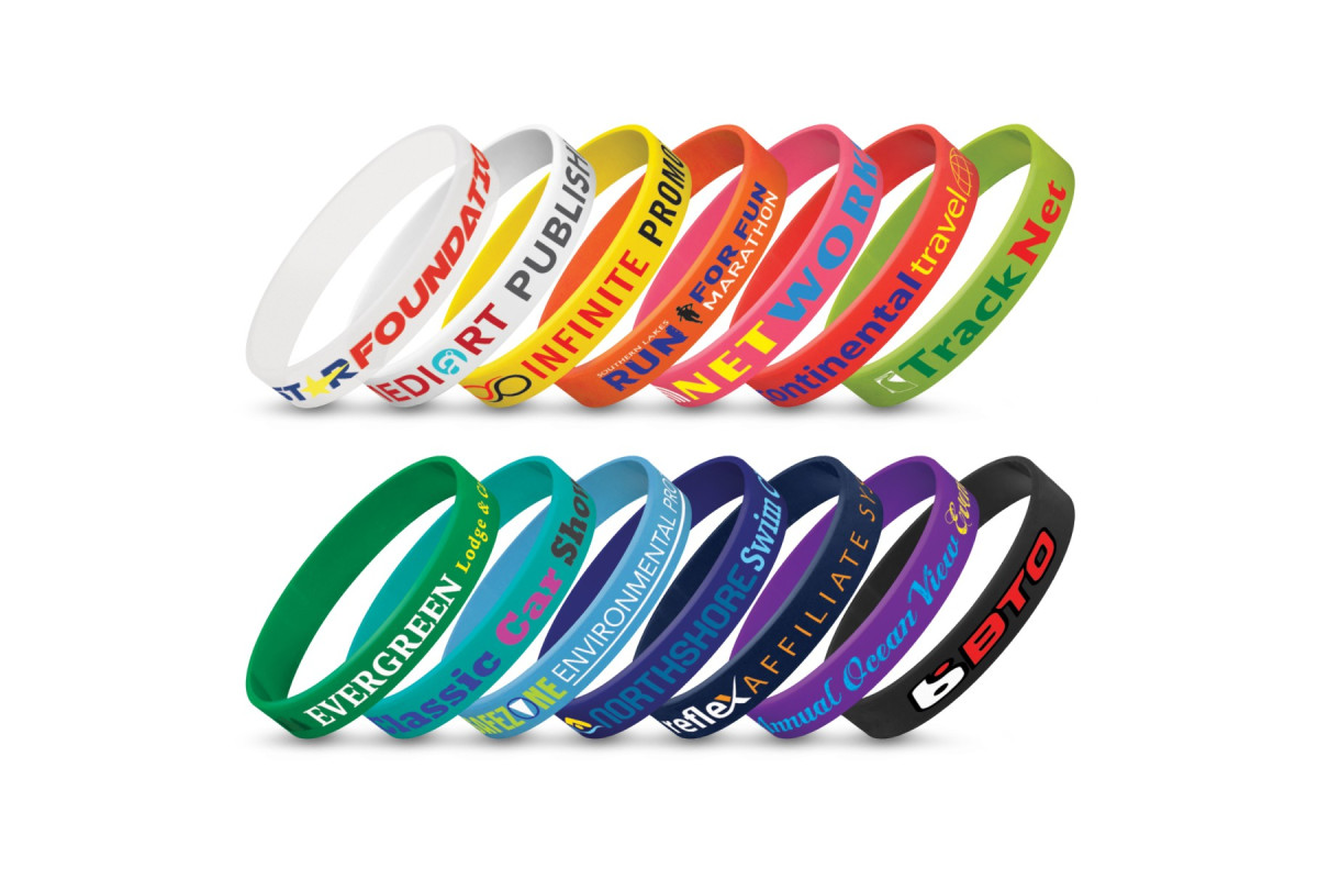 Silicone wrist bands have many uses and are ideal for fundraising, awareness campaigns, promotion and as admission bracelets for events. There are 14 standard colours and PMS colours are available on request. The wrist bands are branded with screen printing and one size fits all. They can be supplied in an optional polybag with or without a full colour label. A production lead time of 20 working days applies to this product by air freight and larger orders can be sea freighted on request to reduce the freight cost.