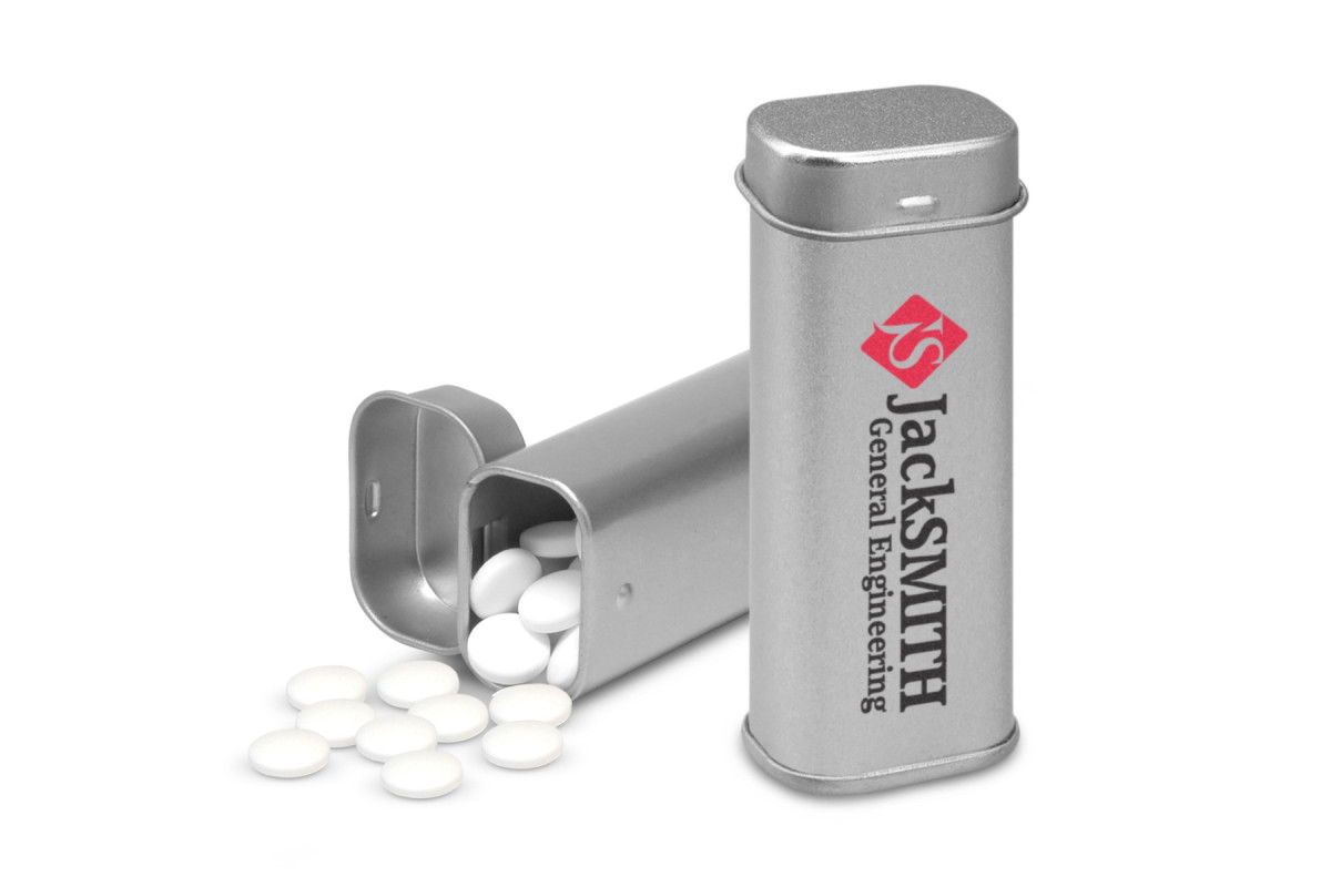 Stylish flip top tin which is filled with 30g of peppermints. Full ingredient and nutritional information is printed on the back of the tin. Features: * Stylish flip top tin * Filled with 30g of peppermints * Nutritional information printed on the back of the tin