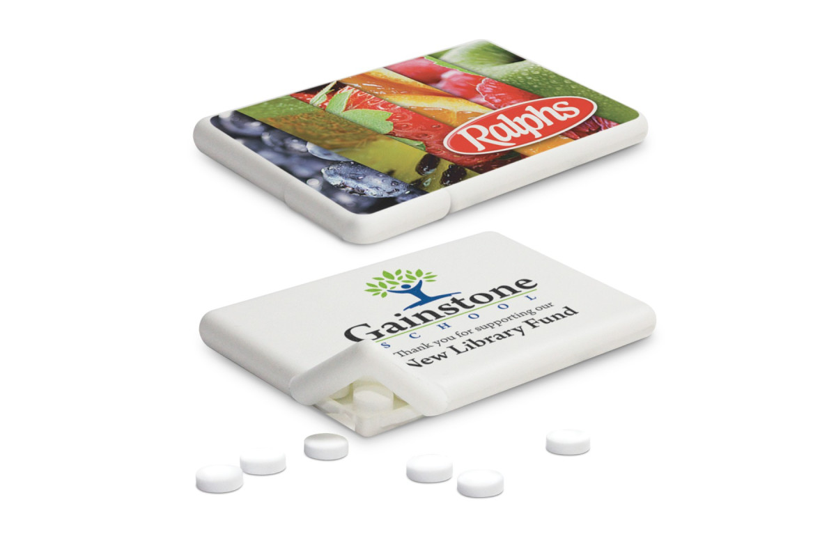 Plastic card which is filled with 7g (approximately 50pcs) of sugar free mints. Full ingredient and nutritional information is printed on the back of the card.