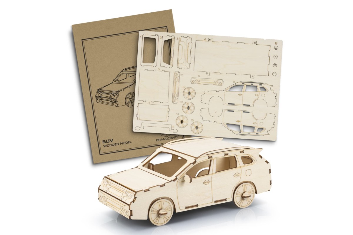 Step into a world of creativity and craftsmanship with BRANDCRAFT's wooden models. Designed to unleash the inner child in any audience, this model SUV is expertly laser cut from an A4 sheet of basswood, a lightweight and strong wood perfectly suited for crafting. The interlocking design means that pieces easily slot together and no tools are needed for assembly. Presented in a brandable cardboard sleeve with assembly instructions, this is an engaging promotional product or gift for adults and children alike. Add your brand to the natural Basswood material or add your brand and colours to the default digital template to bring your brand to life.