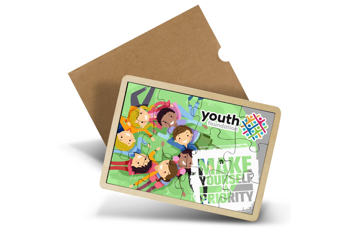 Entertaining 12 piece pine wooden jigsaw puzzle which can be branded in edge-to-edge full colour print. The game and instructions are presented in an individual cardboard sleeve. Wood is a natural material that produces unavoidable variances in the grain pattern, colour and branding.