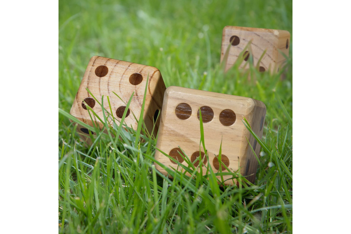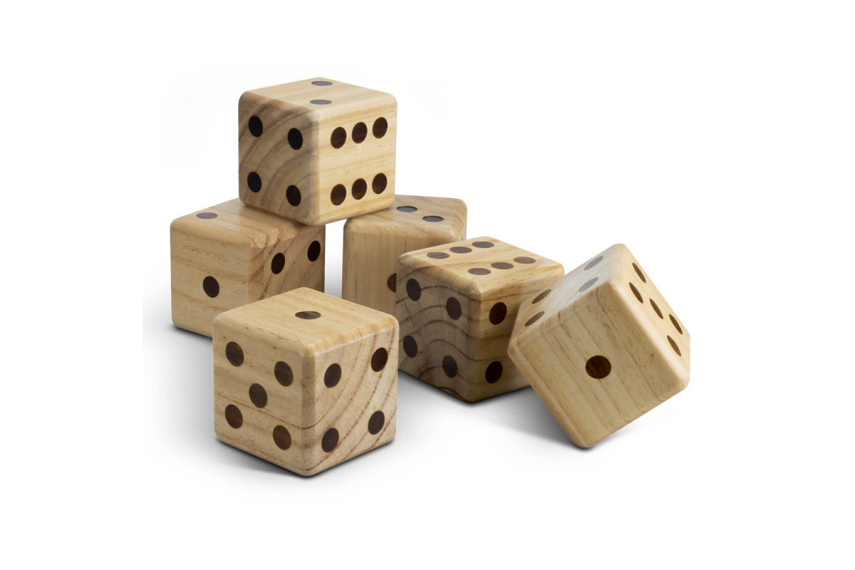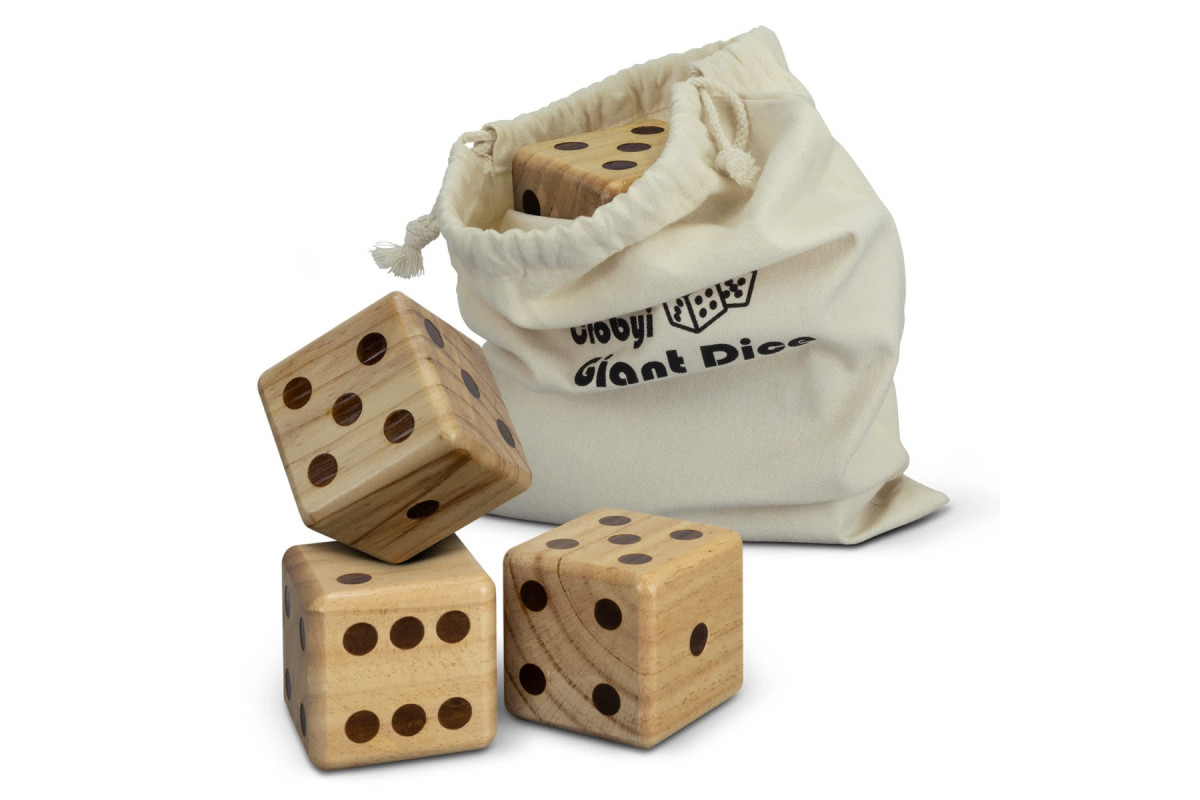 Perfect for garden parties, hospitality and corporate gifting, this premium outdoor wooden dice game includes a Yardzee scoresheet and instructions. The six 9cm dice set is made from Pine wood and is presented in a canvas drawstring bag.
