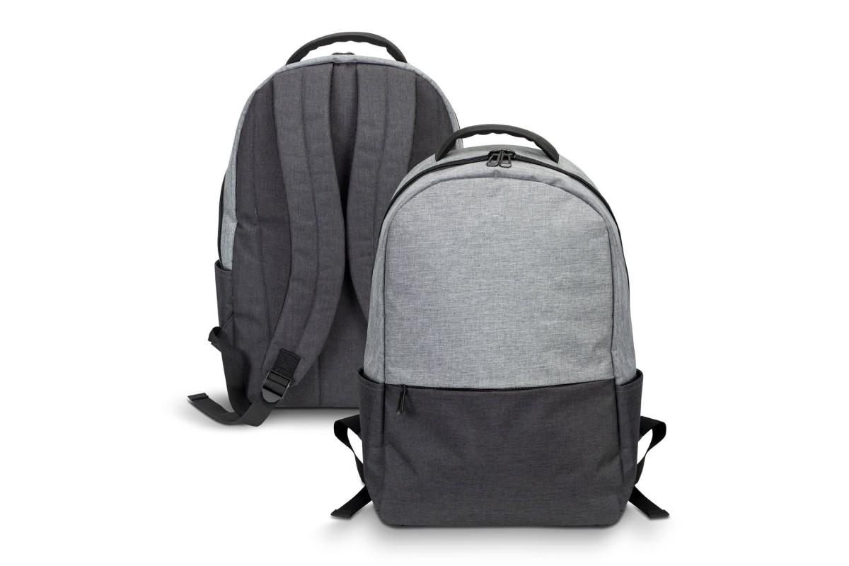 Spacious two-tone 17L backpack made from 300D polyester with 210D lining. The backpack features a large zippered main compartment with a padded laptop pocket, as well as a zippered front pocket and two slip pockets. With a soft carry handle, a padded back and comfortable adjustable shoulder straps, Greyton is the perfect backpack for everyday use.