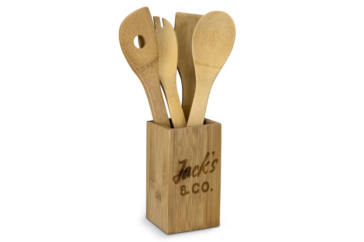 * Stylish bamboo kitchen utensils set