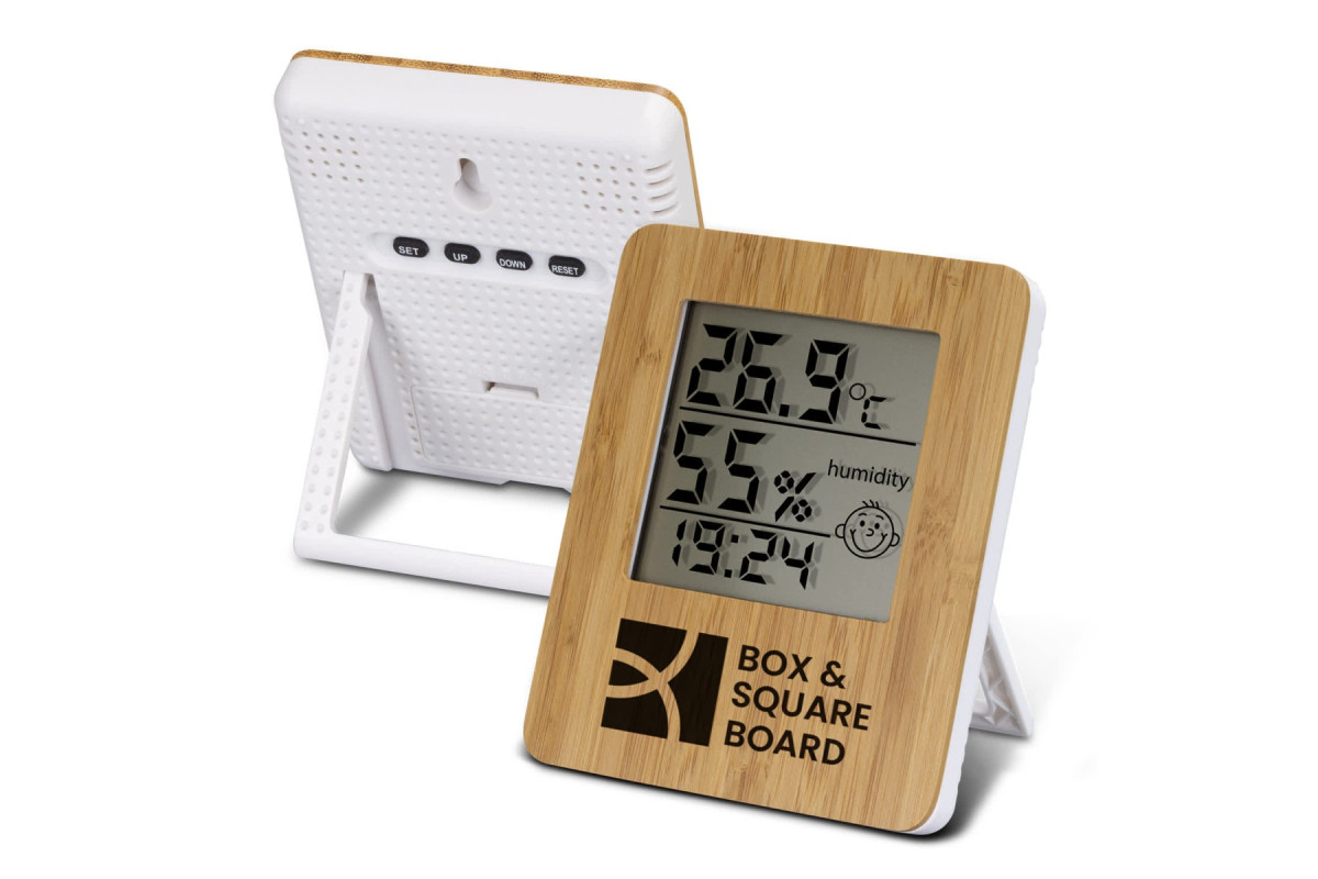 Sophisticated Weather Station that keeps you up to date on the weather conditions. It has four main functions, Temperature (Degrees), Humidity (%), and a clock with time of day in 12 or 24-hour format. Operates with two AAA batteries. Bamboo is a natural material and because the plant is fast growing, it places less demands on natural resources and produces a material that is durable and versatile. Bamboo can also produce unavoidable variances in the grain pattern, colour and branding.