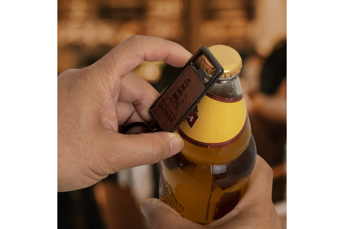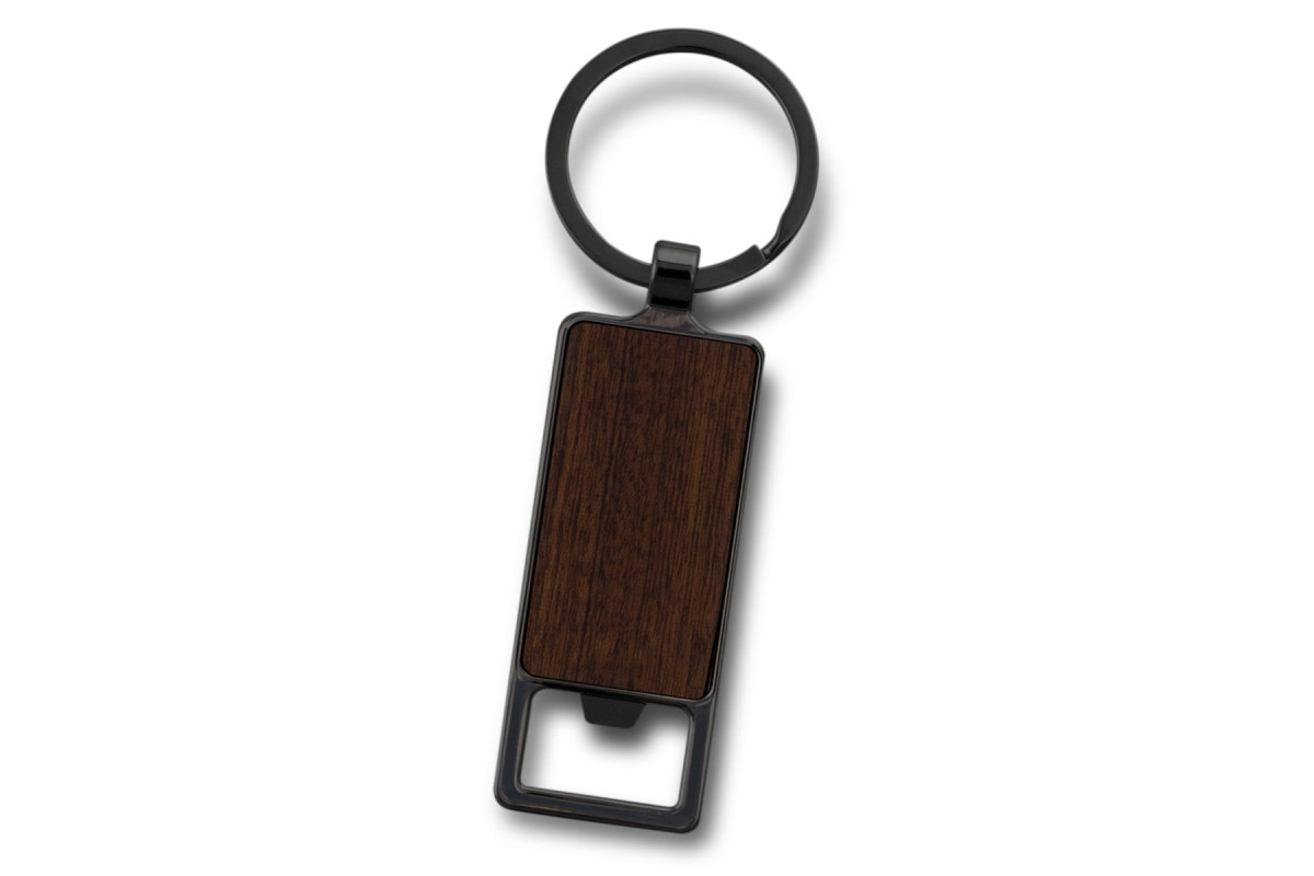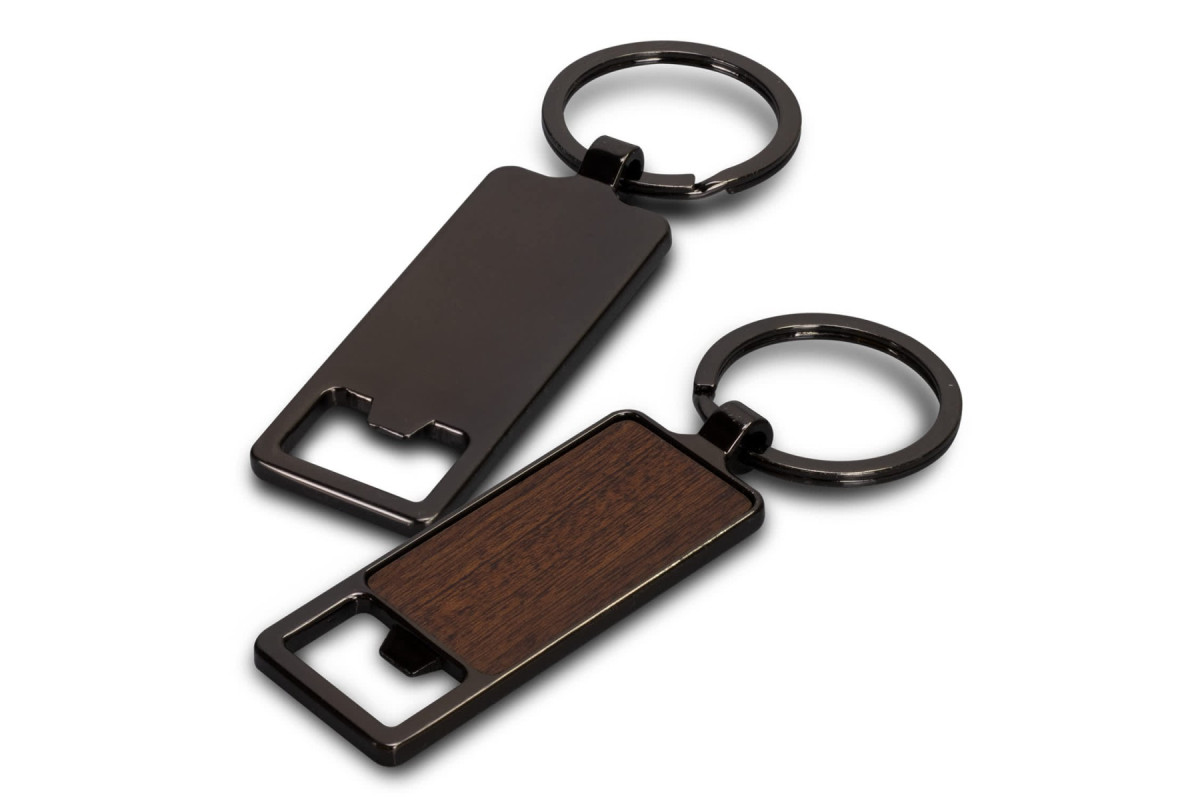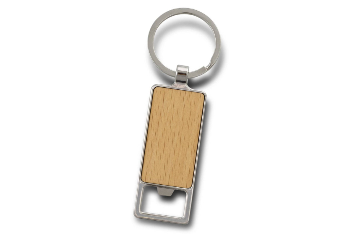 * Bottle opener metal keyring with wooden front