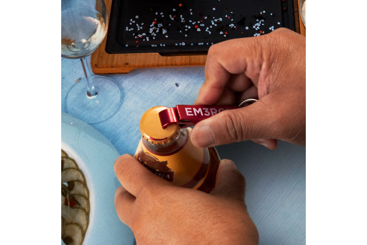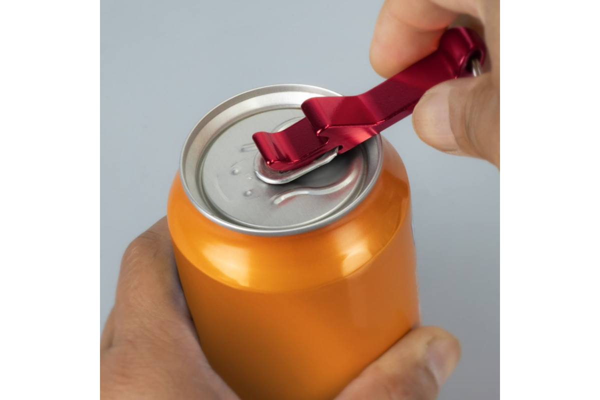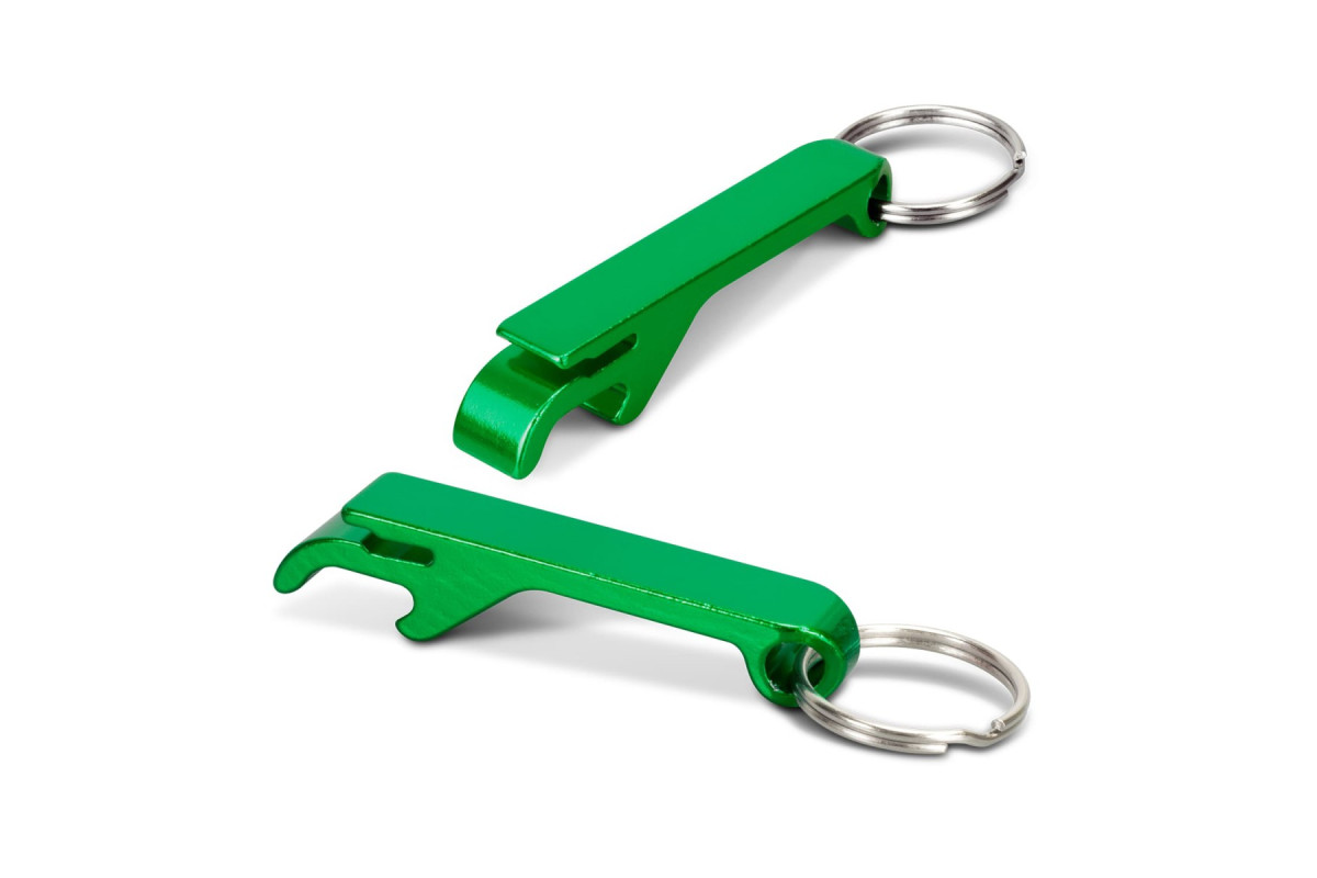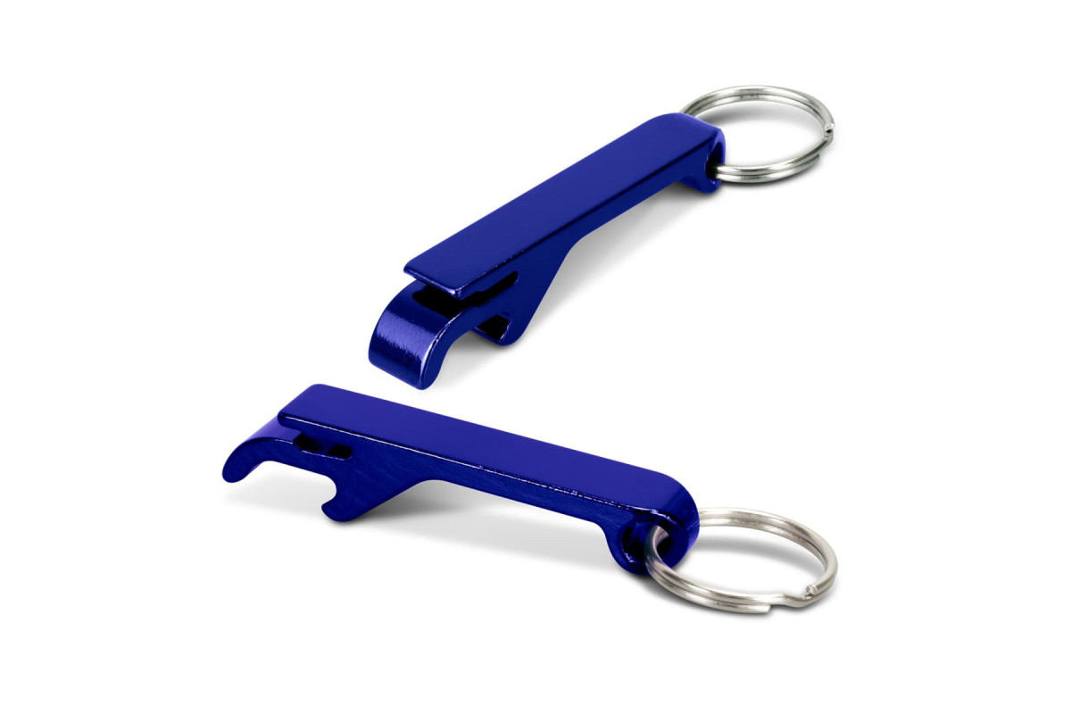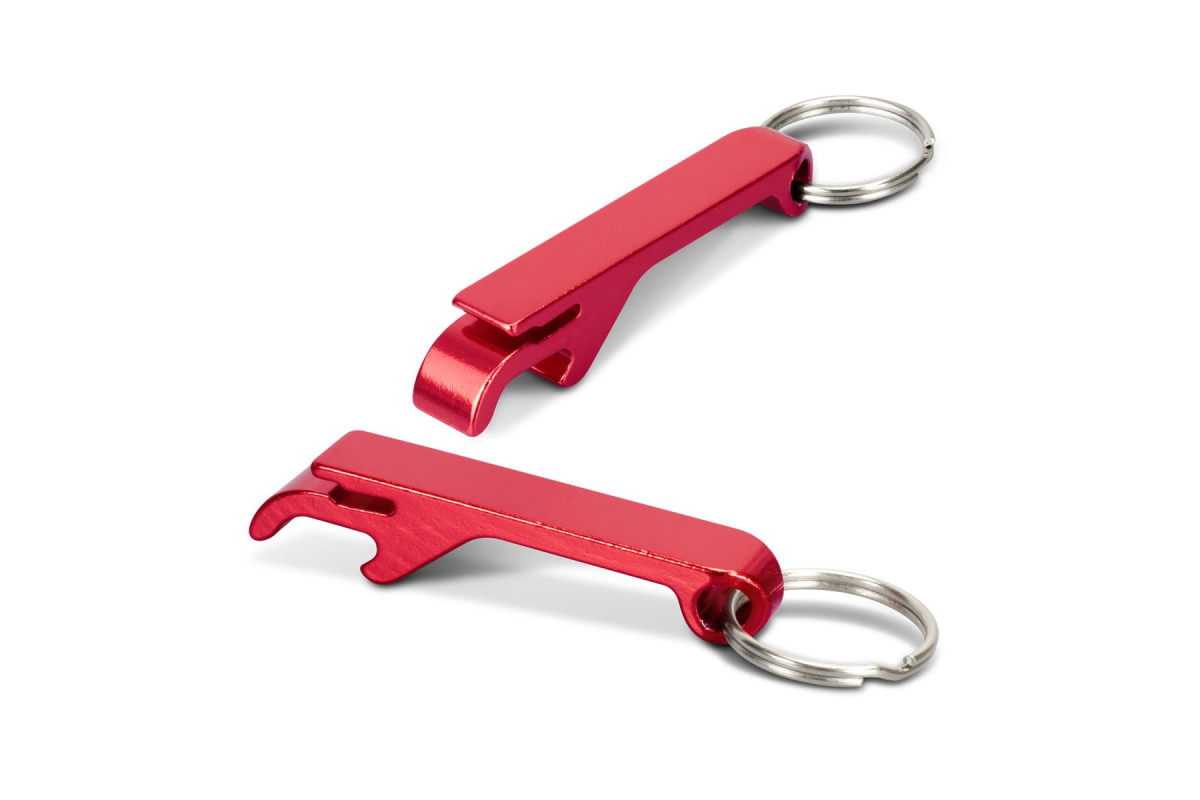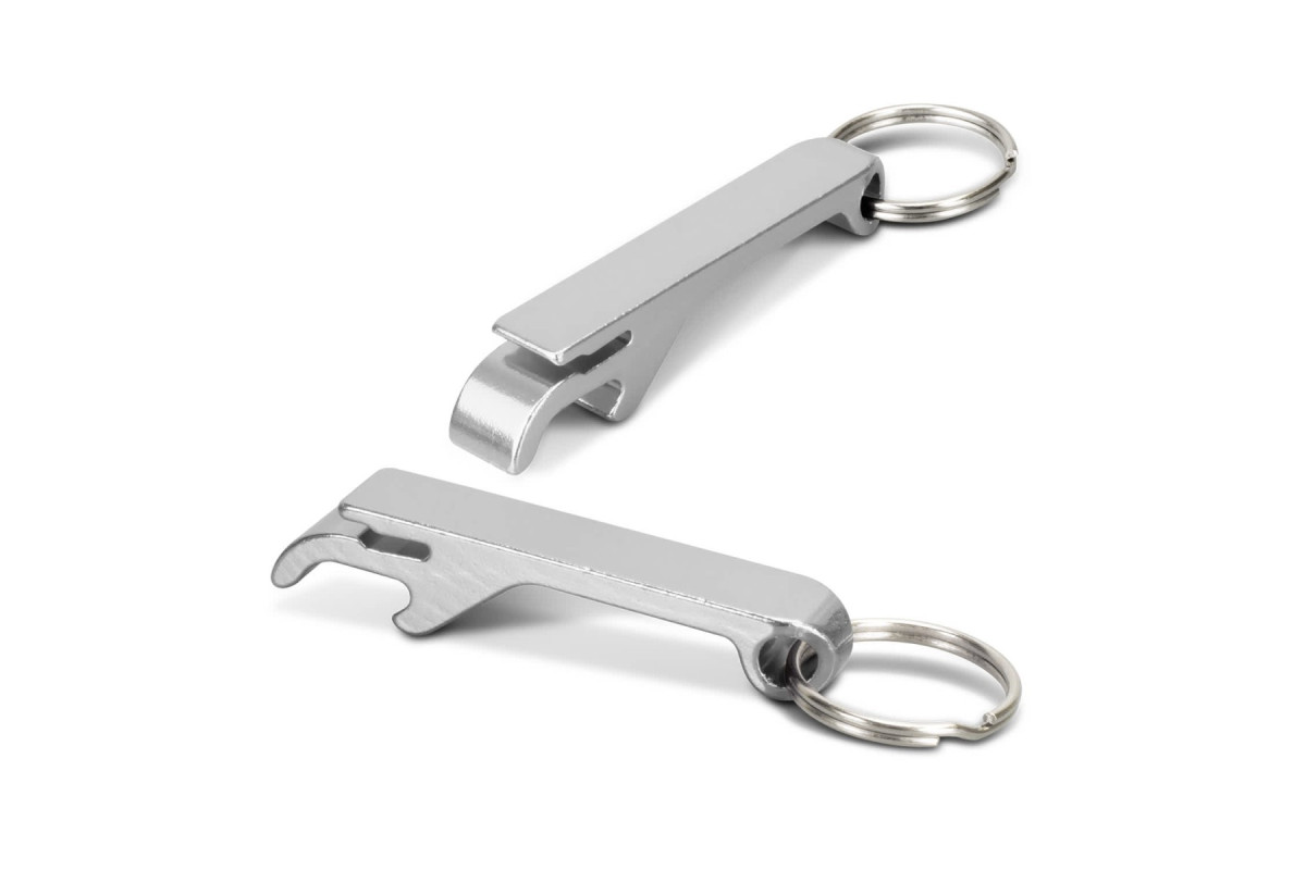 A versatile promotional product, this aluminium bottle opener has a key ring and can also be used to open drink cans. Features: * Compact aluminium bottle and drink can opener with key ring
