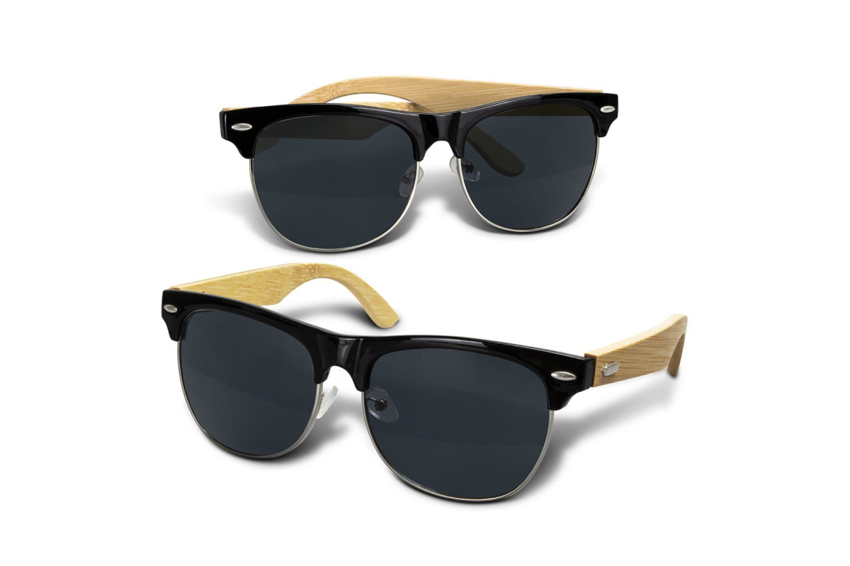 Design inspired sunglasses with a polished ABS frame and natural bamboo arms. They are fitted with CE standard 100% UV 400 lenses that provide both UVA and UVB protection and can be supplied in an optional Montego sunglass case for an additional cost. Bamboo is a natural material and because the plant is fast growing, it places less demands on natural resources and produces a material that is durable and versatile. Bamboo can also produce unavoidable variances in the grain pattern, colour and branding. These sunglasses comply with the ASNZS 1067-2016 standard.