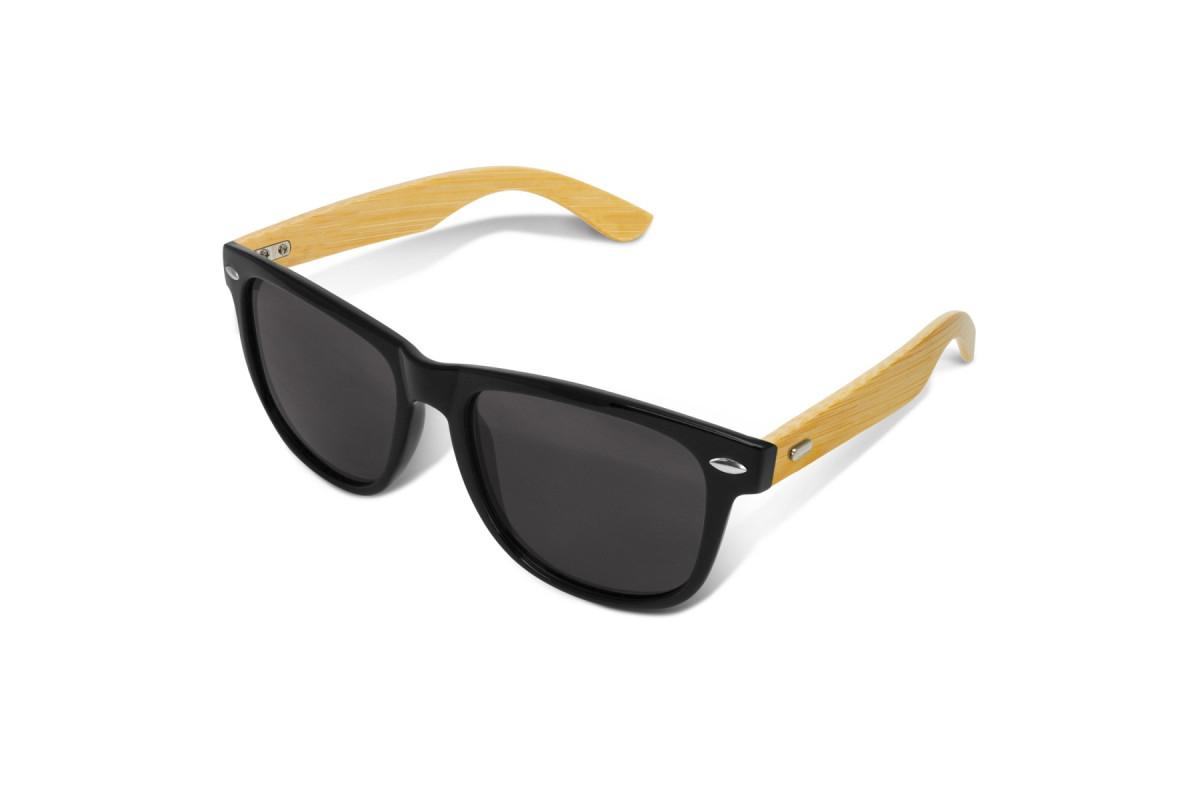 Retail quality sunglasses with an impact-resistant polycarbonate frame and on-trend natural bamboo arms. They are fitted with CE standard 100% UV400 lenses which provide both UVA and UVB protection. They can be supplied in an optional Montego sunglass case for an additional cost. Bamboo is a natural material and because the plant is fast growing, it places less demands on natural resources and produces a material that is durable and versatile. Bamboo can also produce unavoidable variances in the grain pattern, colour and branding.