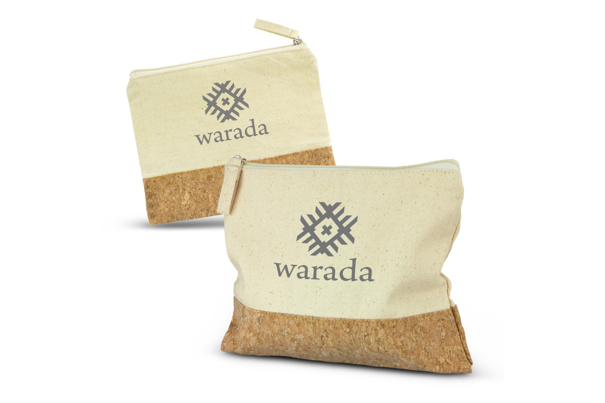 Smart pencil case which is manufactured from unbleached cotton canvas with a stylish natural cork accent panel around the base. It has a matching zippered top closure with a canvas zipper pull.