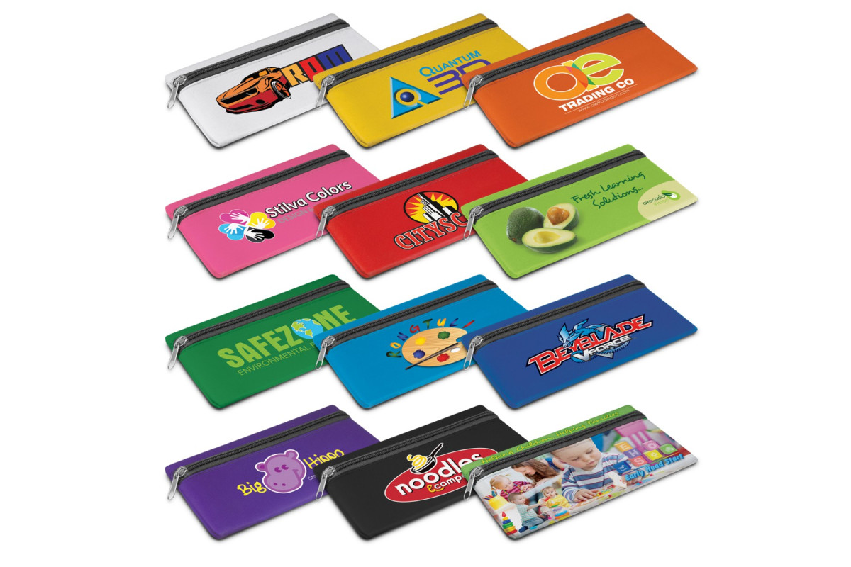 Large neoprene pencil case which has a secure black zippered closure. It can be branded on both the front and back in full colour at no extra cost. A production lead time of 40 working days applies to this product.