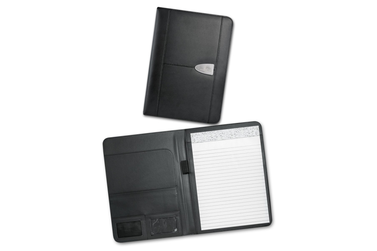 Superior large portfolio with a superb bonded leather cover. It has a lined A4 pad, a business card pocket and a pen loop. Sovrano has a unique metal centre plate which can be branded with the choice of a resin coated finish or a metal insert that laser engraves to a stainless steel finish. It can also be laser engraved directly onto the portfolio and can include individual names for an additional charge. The portfolio surface laser engraves to a matt brown finish.