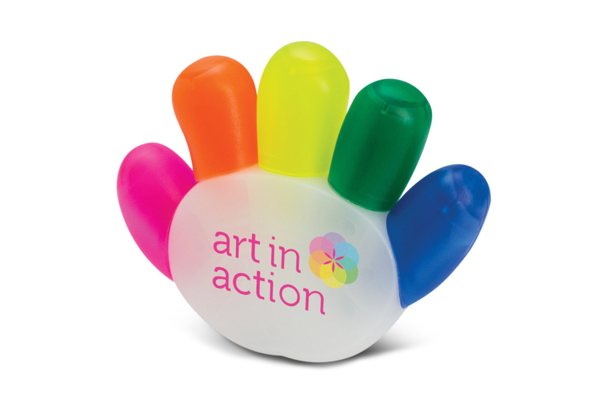 * Hand-shaped highlighter set with pink, orange, yellow, green and blue highlighters