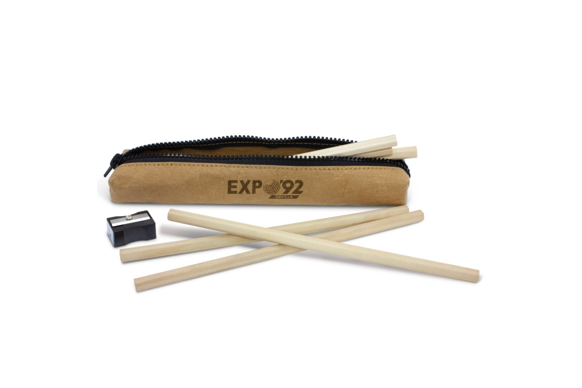 Compact set of six coloured pencils and a pencil sharpener in a trendy Tyvek case with a zippered closure. The Tyvek look has become very popular and the material itself is lightweight and extremely durable.
