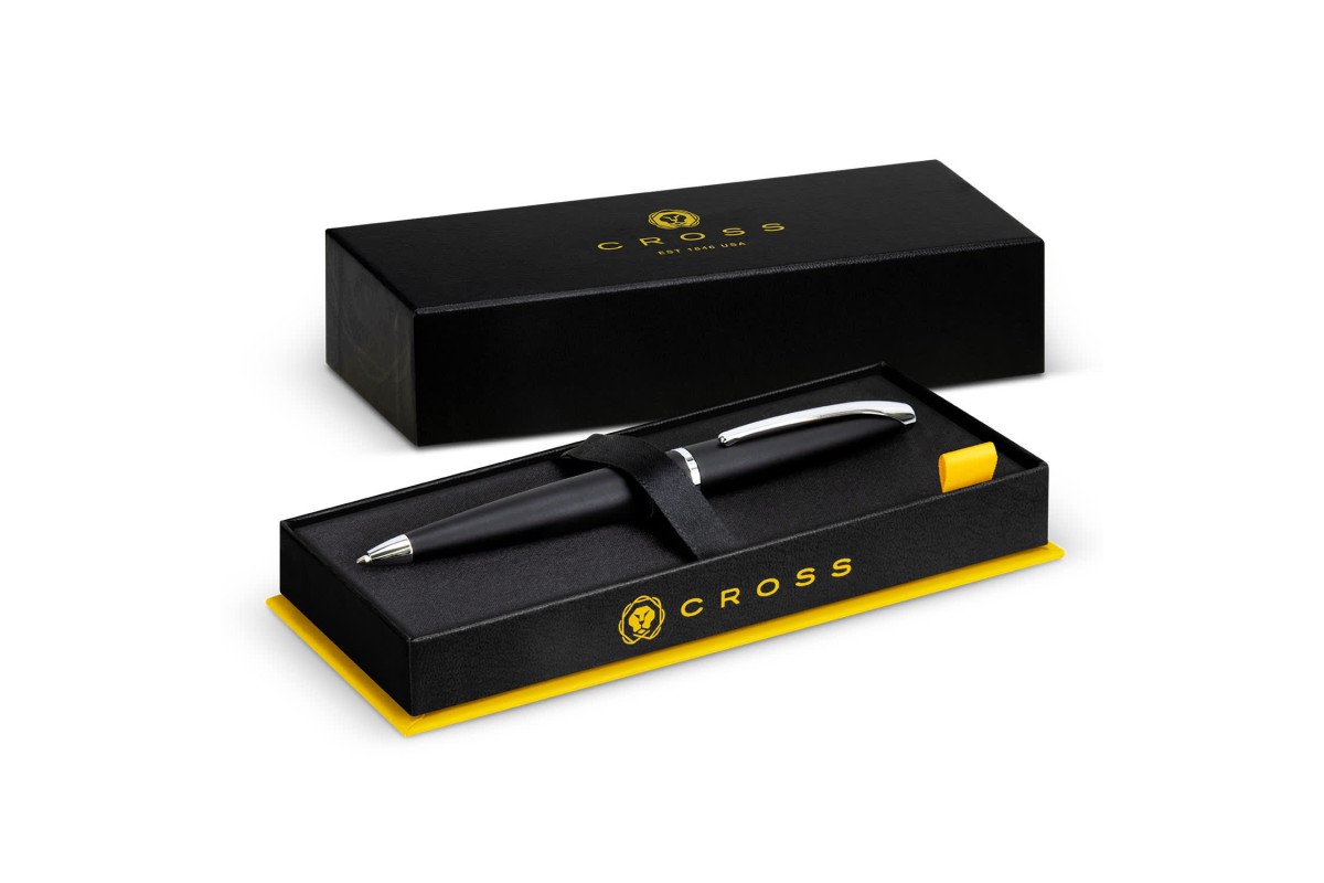 Since 1846, Cross has been redefining the art of writing by creating distinguished, expertly crafted writing tools. The Cross ATX ballpoint pen features modern industrial design with its matte black lacquer finish and polished chrome-plated appointments. Featuring a distinctive integrated clip, wide barrel, and elegantly tapered ends, the ATX is perfectly balanced for a superior writing experience. The swivel-action propel/repel mechanism and specially formulated ink provide a smooth, flawless writing experience and a Lifetime Mechanical Warranty gives you peace of mind. The Cross name engraved on the pen clip adds a touch of distinction. Presented in a Cross branded gift box with a cardboard sleeve, this pen is the perfect gift for anyone who appreciates the art of fine writing. Additional colour options are available - please contact our customer service team for stock availability and pricing. Features: * Wide barrel with elegantly tapered silhouette * Matte black lacquer finish with polished chrome plated appointments * Swivel-action propel/repel writing mechanism * Specially formulated ink that flows flawlessly for a superior writing experience * Distinctive integrated pen clip, engraved with Cross name * Covered by the Cross Lifetime Mechanical Warranty * Presentation: Cross branded gift box and cardboard sleeve