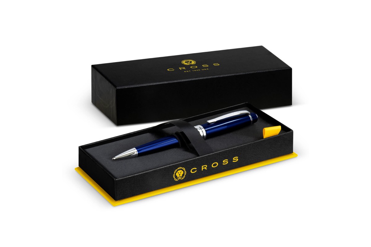 Since 1846, Cross has been redefining the art of writing by creating distinguished, expertly crafted writing tools. The Cross Bailey ballpoint pen was designed with an eye for detail. From its multi-grooved chrome centre ring with patterned engravings to its sleek, modern clip engraved with the Cross name, it exudes a distinct style that's sure to be noticed. A classic Cross design featuring a signature conical top, cap over barrel style, and a striking blue lacquer finish with polished chrome appointments, this pen is a true statement piece. The swivel-action propel/repel mechanism and specially formulated ink provide a smooth, flawless writing experience and a Lifetime Mechanical Warranty gives you peace of mind. Presented in a Cross branded gift box with a cardboard sleeve, this pen is the perfect gift for anyone who appreciates the art of fine writing. Additional colour options are available - please contact our customer service team for stock availability and pricing. Features: * Classic Cross design with signature conical top and cap over barrel design * Blue lacquer finish with polished chrome appointments and multi-grooved chrome centre ring with patterned engravings * Swivel-action propel/repel writing mechanism * Specially formulated ink that flows flawlessly for a superior writing experience * Cross name subtly engraved on the pen clip * Covered by the Cross Lifetime Mechanical Warranty * Presentation: Cross branded gift box and cardboard sleeve