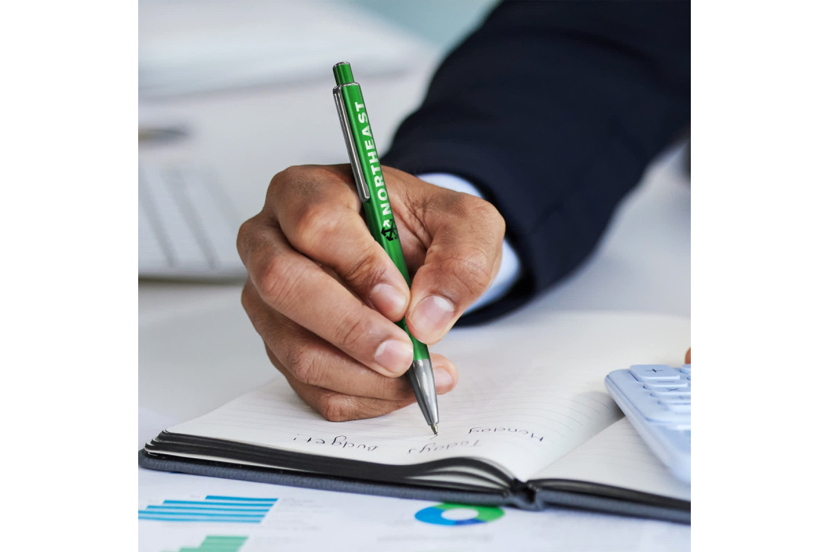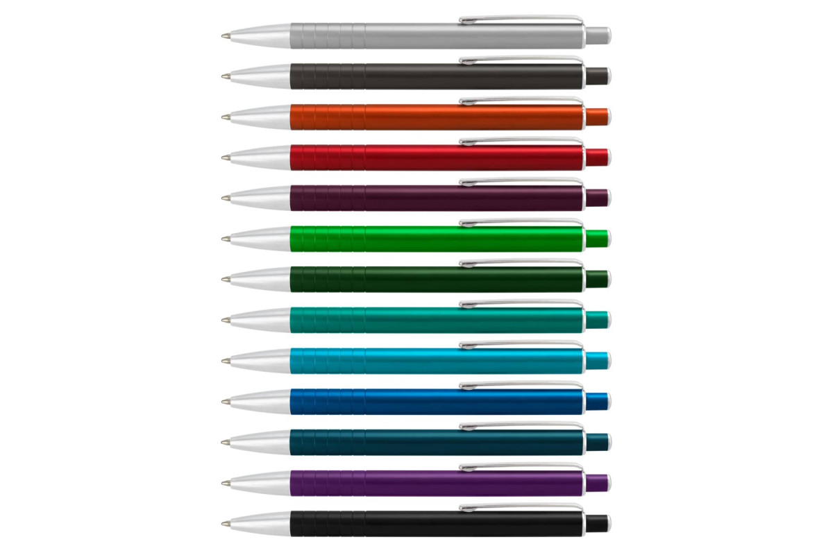 * Retractable aluminium ballpoint pen with a matte anodised barrel