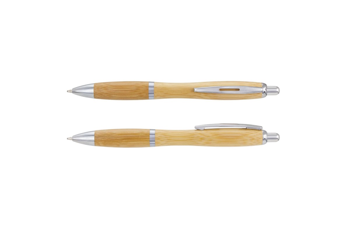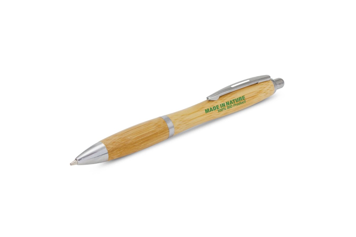 * Retractable bamboo ballpoint pen with a stylish contoured barrel