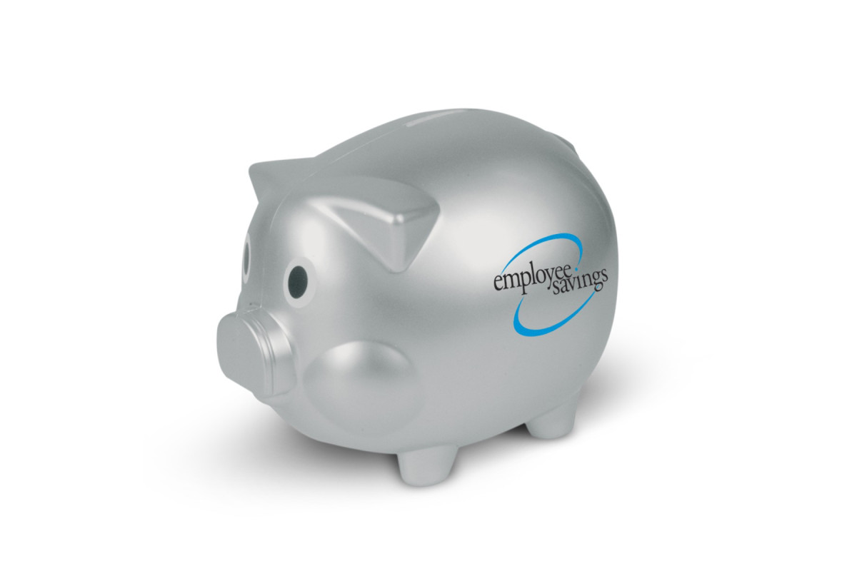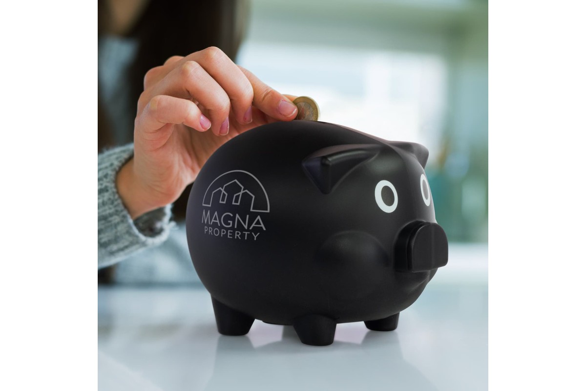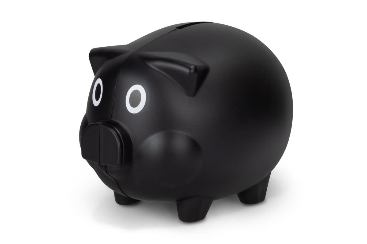 Large piggy bank with a removable plug in the base so it can be reused many times.