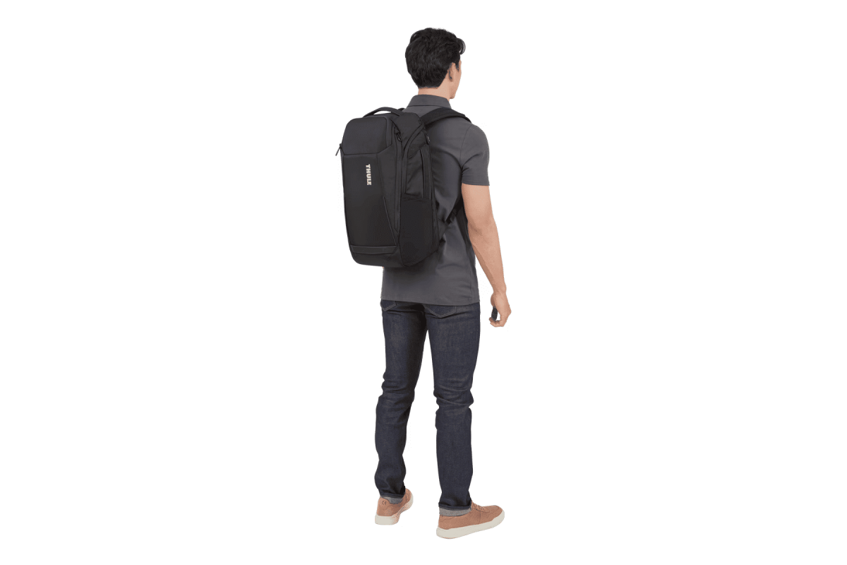 Technical Specifications Dimensions (LxWxH) 31.0 x 27.0 x 52.0 cm Volume 28 L Laptop compartment dimensions 38.5 x 26.5 x 3.1 cm Material Constructed of 100% recycled 1680 polyester material with YKK zippers Colour Black Model name TACBP2216 Weight 1.1 kg Country of origin Vietnam