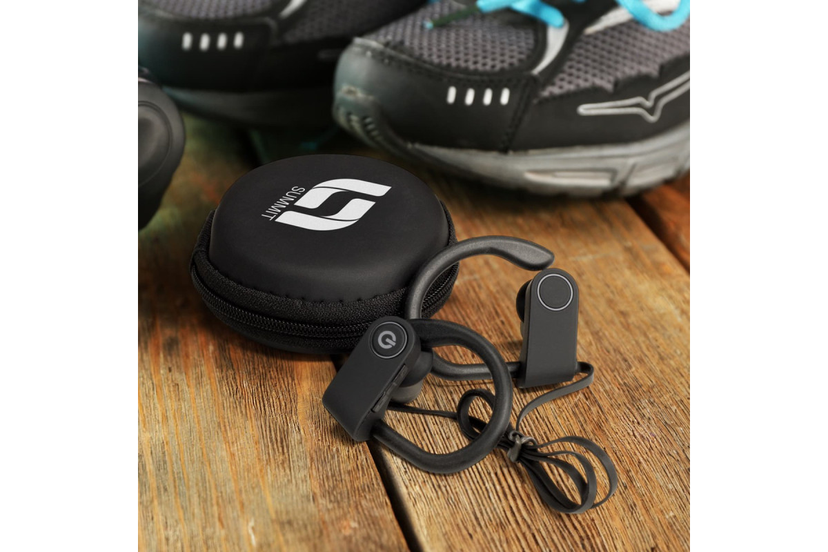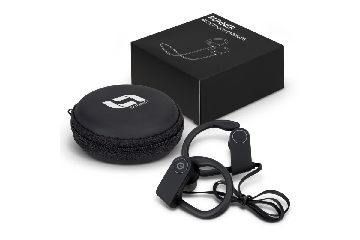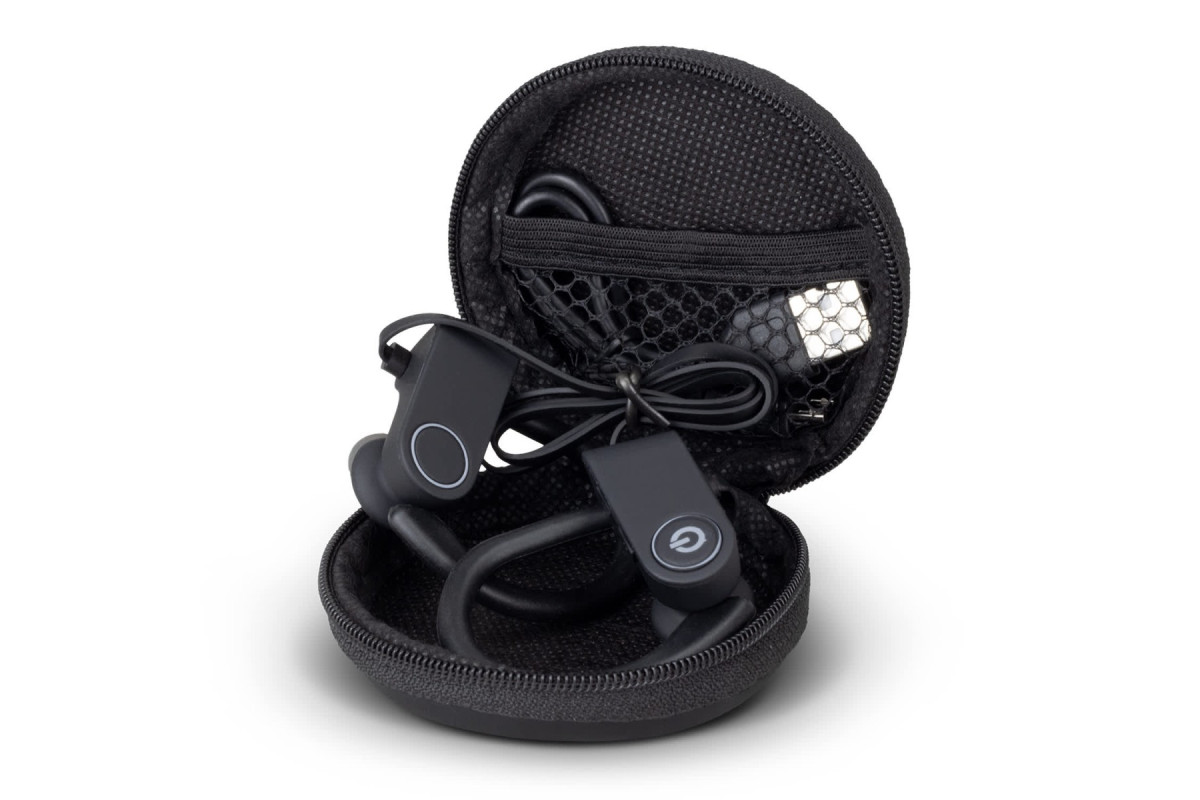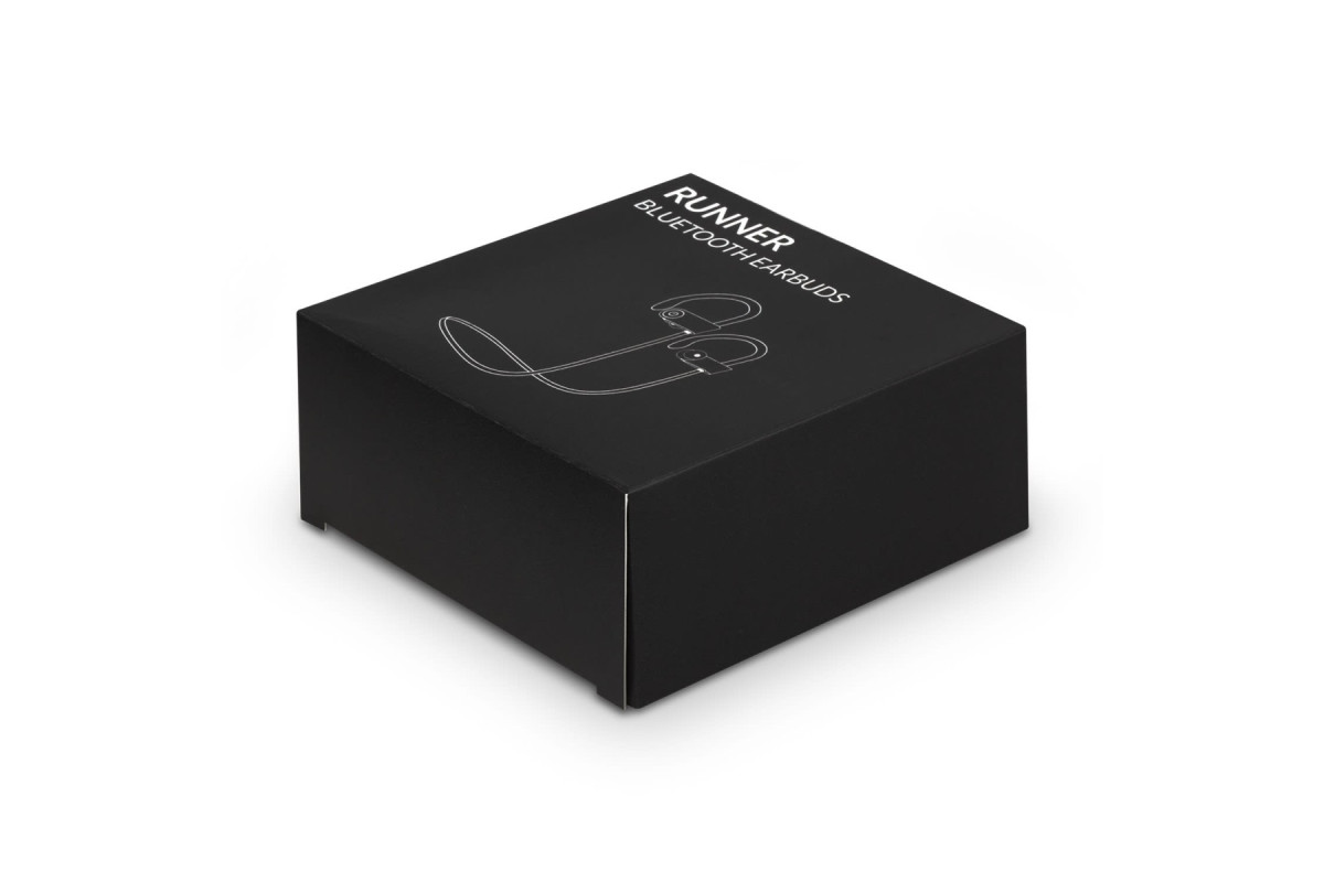 Performance Bluetooth earbuds with comfortable silicone ear hooks and a neck strap for securing the earbuds while listening on the go. Easily control your music and calls with the built-in controls and enjoy up to 10 hours of listening. The earbuds are supplied in a convenient carry case with a charging cable and instructions. Features: * Performance Bluetooth earbuds designed for active lives * Secure neck strap and silicone ear hooks * Play music for up to 10 hours via Bluetooth * Built-in controls for volume, track and calls * Convenient carry case with charging cable and instructions * Presentation: Black gift box with product branding