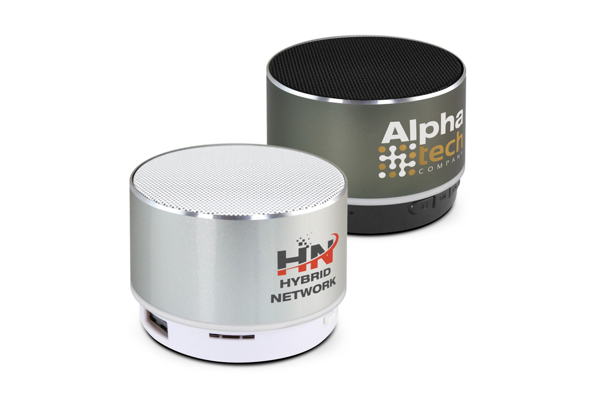 Stylish 3W, metal Bluetooth speaker which is compatible with all mobile devices that support Bluetooth. It has a wireless connectivity range of over 10 metres and can also be used with an audio cable. The speaker has a radio function, a colourful light display, a built-in microphone for phone calls and music playback can be controlled directly from the speaker. Playing time is 1.5 hours and it is easily recharged from a laptop, a power bank or a USB mains adapter. Oracle laser engraves to a natural etch and is presented in a gift box with a Micro-B USB cable, an audio cable and an instruction leaflet.