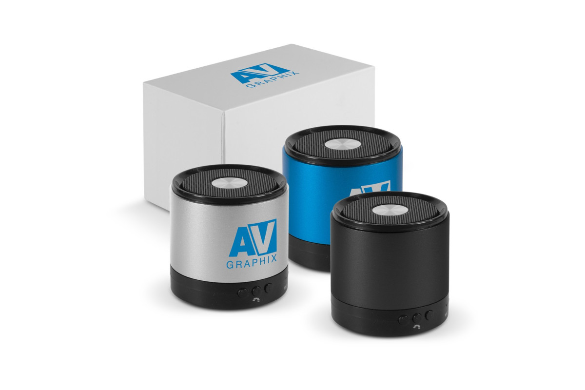 Stylish 3W Bluetooth speaker which offers high definition stereo sound and is compatible with all mobile devices that support Bluetooth. It has a wireless connectivity range of over 10 metres and can also be used with an audio cable. Playing time is 3-4 hours and it is easily recharged from a laptop, a power bank or a USB mains adapter. It has a microphone for phone calls and music playback can be controlled directly from the speaker. Polaris is presented in a gift box with a Micro-B USB cable, an audio cable and an instruction leaflet. The blue and black speakers engrave to an oxidised white finish and the silver speaker engraves to a natural etch finish. Features: * Stylish 3W Bluetooth speaker * Compatible with most devices that support Bluetooth * Wireless connectivity of up to 10 metres * Playing time of up 4 hours * Supplied with a Micro-B USB cable