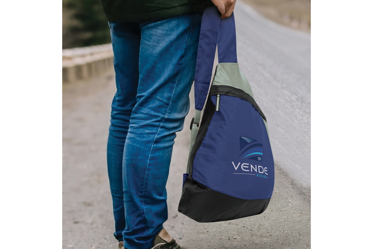 Affordable slinger bag which is manufactured from 210D polyester. The single, adjustable shoulder strap allows the bag to be rotated to the front of the body and accessed without taking it off. It has a zippered main compartment and a water bottle carrier.