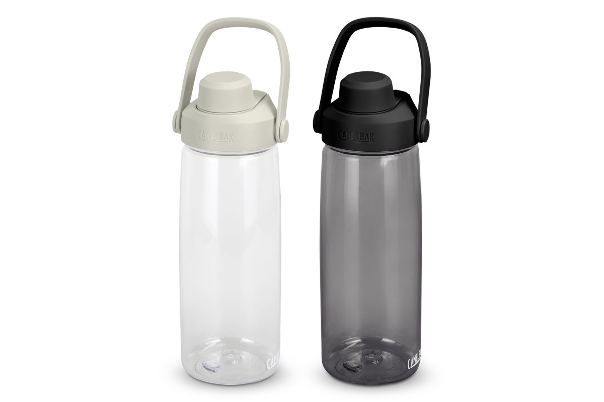 Don't just sip, chug. The 750ml Thrive Chug Bottle is built to keep you hydrated on even the harshest days. Manufactured from Tritan Renew plastic, a highly durable and lightweight plastic which is BPA-, BPS- and BPF-free and easy to clean. The leak-proof screw lid protects a wide spout silicone chug cap. When opened a spring-loaded mechanism smoothly flips the lid back and holds it in place while you drink. The large soft silicone carry handle provides a comfortable grip, while the non-slip base keeps the bottle steady. CamelBak products are backed by the Got Your Bak lifetime guarantee.