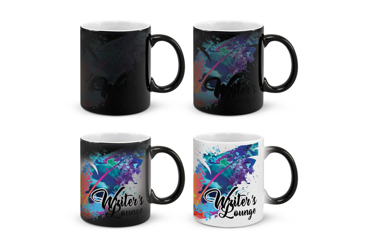 * Watch your branding 'magically' appear when hot liquid is added and disappear as it cools