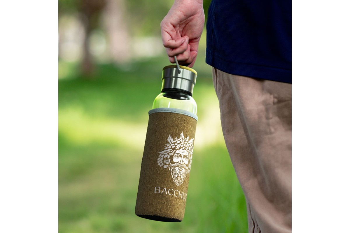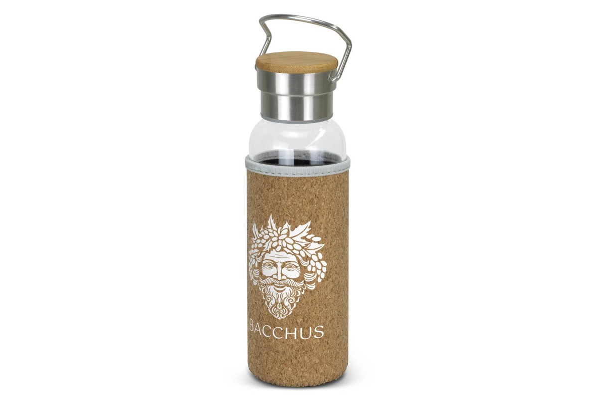 Classic 600ml borosilicate glass drink bottle with an insulative neoprene sleeve featuring a natural cork outer. Borosilicate is lightweight, exceptionally strong and is shatter-resistant. The bottle features a secure screw on lid with a convenient carry handle and a natural bamboo panel. An optional gift tube is available for presentation.