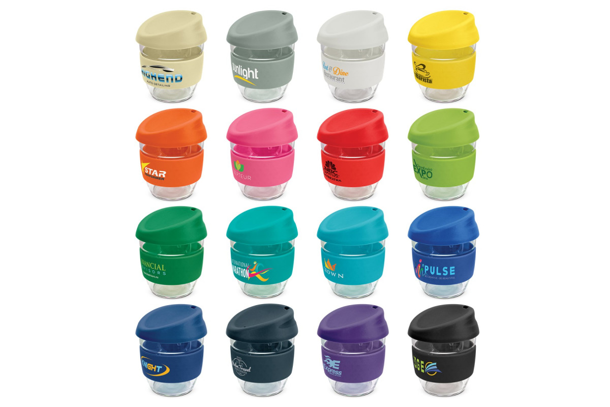 Elegant 250ml reusable borosilicate glass coffee cup with a secure push on silicone lid and a wide heat-resistant silicone band. Borosilicate is lightweight, exceptionally strong and shatter-resistant. It is a BPA-free choice for a clean, pure taste and is a natural alternative to single-use paper cups. The lid and band can be mixed and matched in any colour combination from the standard colours at no extra cost. Up to five different colour combinations are included in the price and more are available for an additional charge. Nova Cup is presented in an unbleached cardboard gift box with a window to show the branding and product care instructions are printed on one side. An optional gift tube is available on request. This product is not dishwasher safe and handwashing is recommended. Nova Cup is protected under New Zealand Design Registration No. 426637 and Australian Design Registration No. 201916426.