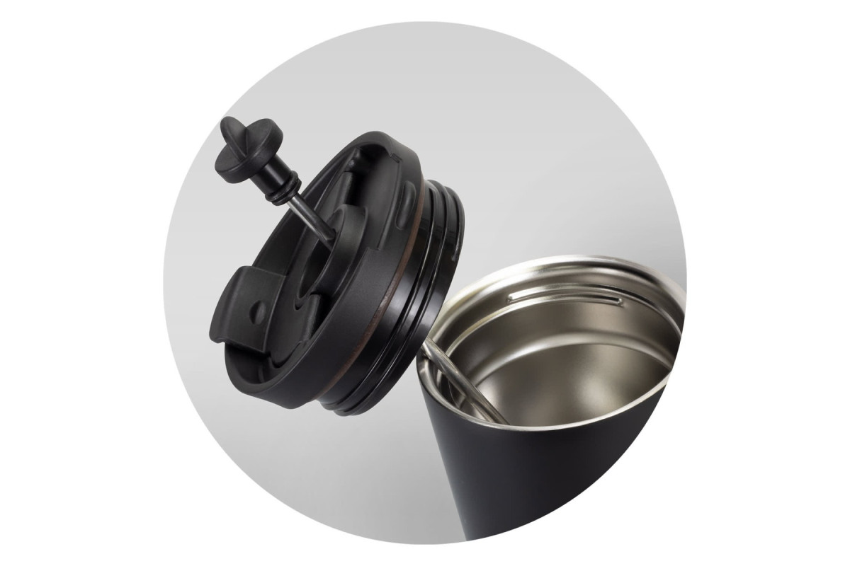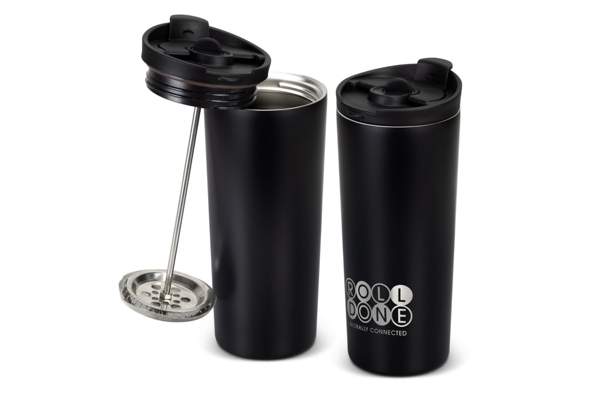 Brew and drink delicious coffee on the go with the Coffee Press Vacuum Cup. Made from stainless steel with a painted finish, this vacuum insulated cup features a screw on lid with a built-in coffee plunger and a flip cap. The cup is BPA-free and is presented in a black gift box. Features: * 500ml vacuum insulated coffee cup with built-in coffee plunger * Made from stainless steel with a painted finish * Secure screw on PP lid with flip closure * Presentation: Black gift box