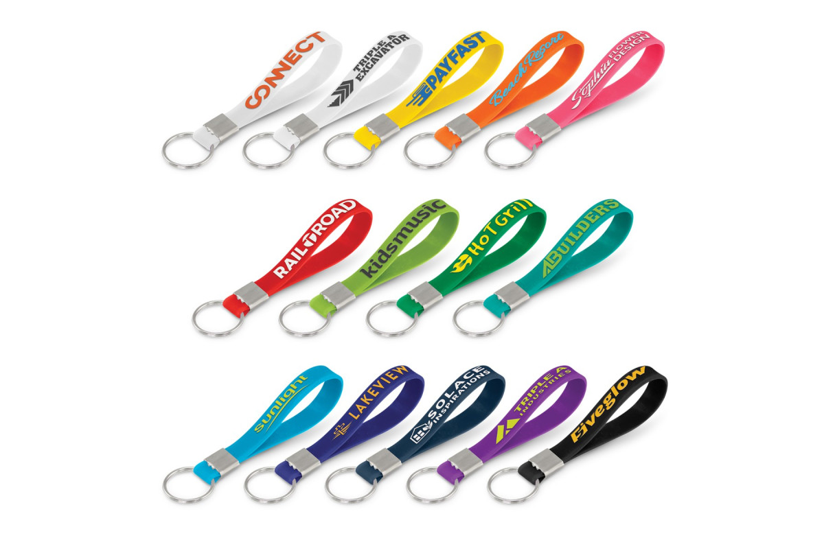 Unique key ring with a 12mm wide silicone loop. It is branded with embossing which raises the logo above the surface. All or part of the raised surface can be printed with up to two colours which is optional. A production lead time of 25 working days applies to this product by air freight and larger orders can be sea freighted on request to reduce the freight cost.