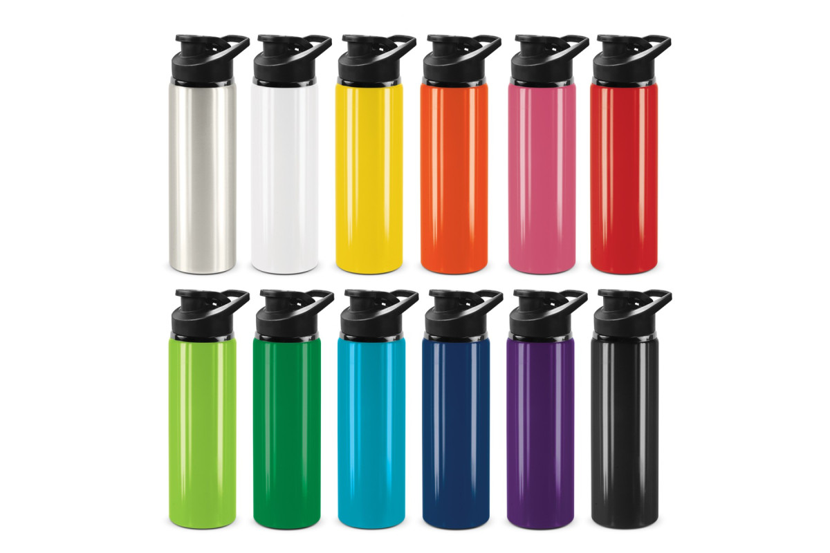 Vibrant BPA-free 750ml aluminium drink bottle which has a secure screw on lid with a leakproof snap cap and a carry handle. This product is not dishwasher safe and handwashing is recommended.
