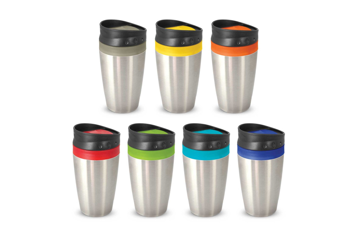 Impressive 400ml double wall cup which will keep coffee hot for longer. It has a stainless steel outer wall and a polypropylene inner wall. Octane has a secure screw on lid with a splashproof sliding closure and a soft non-marking base. It laser engraves to a natural etch and is BPA-free. This product is not dishwasher safe and handwashing is recommended.