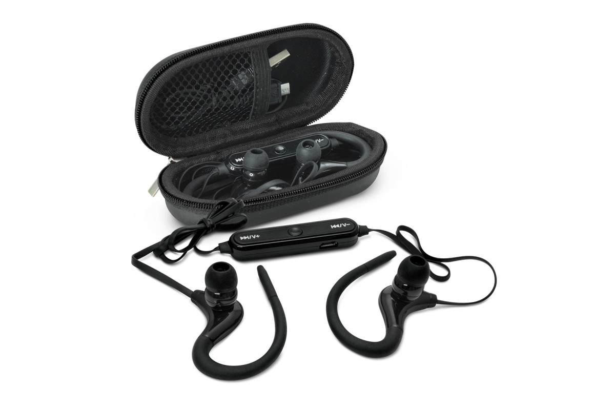 Bluetooth earbuds with secure ear loops which produce crystal-clear, high definition stereo sound. They have a built-in microphone which allows the user to take phone calls while using them. Olympic will play music continuously for 90 minutes at high volume and can be recharged in 90 minutes from any USB port or a mains adapter. They are presented in a smart carry case along with a Micro-B USB cable and an instruction leaflet.