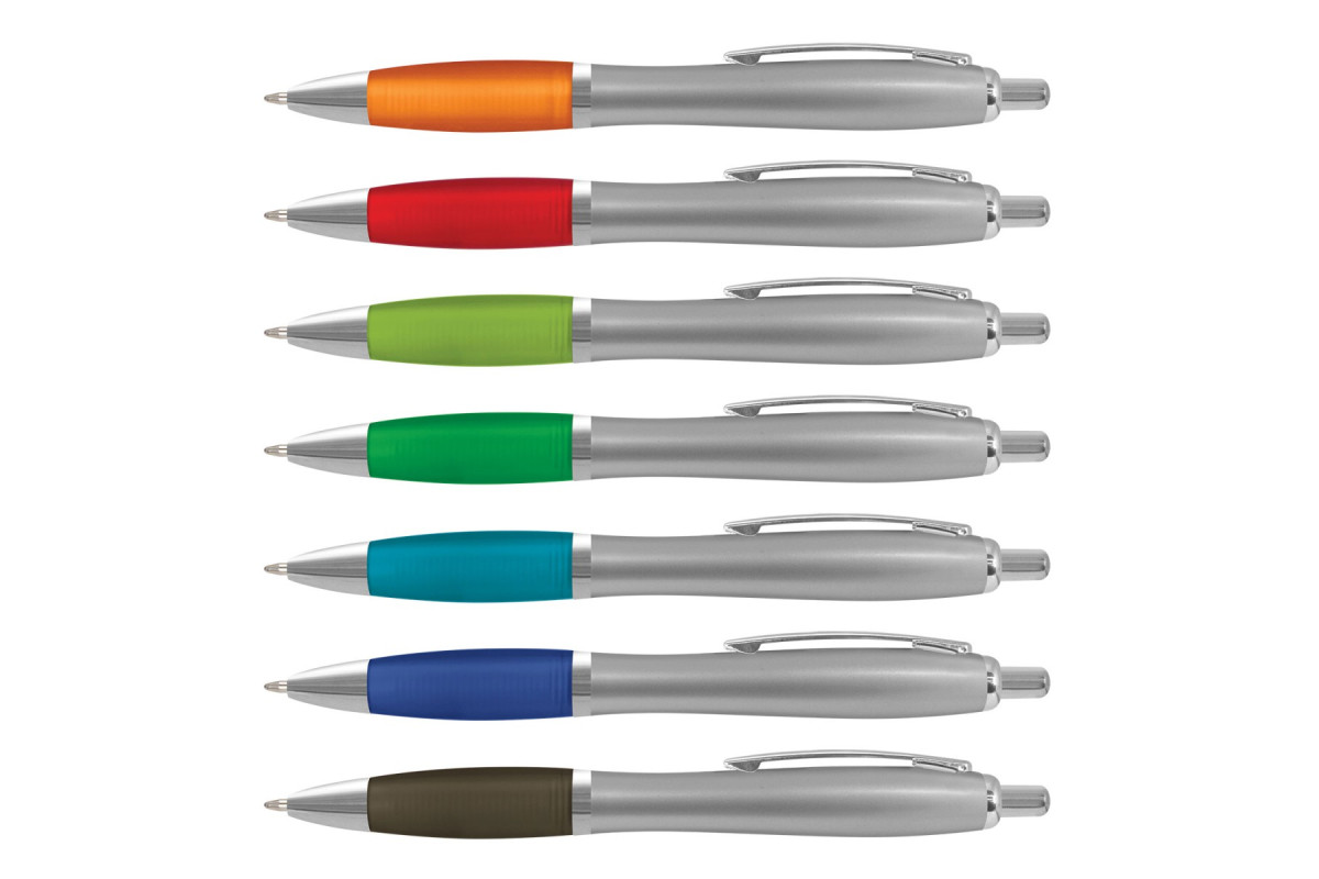 Retractable plastic ballpoint pen with a translucent barrel, a frosted translucent soft-touch grip and shiny chrome trim. It has a black large volume refill with 1800 metres of German manufactured Dokumental ink and can be presented in an optional pen sleeve . Features: * Retractable plastic ballpoint pen with a metallic silver barrel * 1800m of black Dokumental ink * Soft-touch grip and shiny chrome trim * Optional pen sleeve available