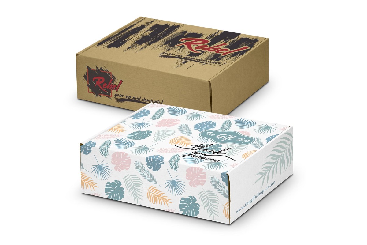 Professional custom gift box made from durable 3mm e-flute corrugated cardboard to provide reliable protection during transit. This extra-large box is perfect for gifting and building strong brand recognition. Featuring a convenient hinged lid, selected panels of the box can be customised with CMYK digital print. It is supplied flat-packed for easy postage and storage, and its self-locking design ensures hassle-free assembly. The assembled internal dimensions are 502mm x 295mm x 150mm (LxWxH).