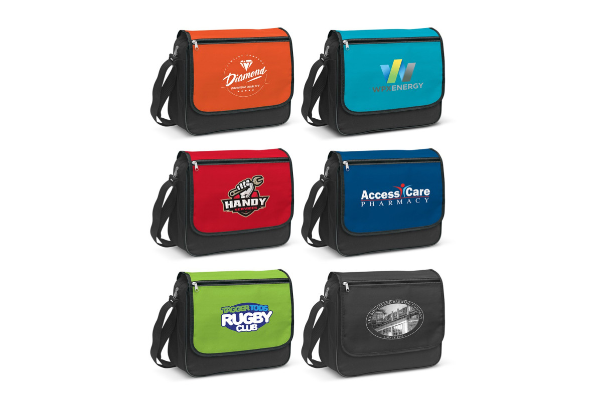 Classic messenger bag with a Velcro closure which is manufactured from tough 600D polyester. It has a large gusset for increased capacity and an adjustable woven shoulder strap. Other features include a large zippered front pocket and a mesh water bottle carrier.