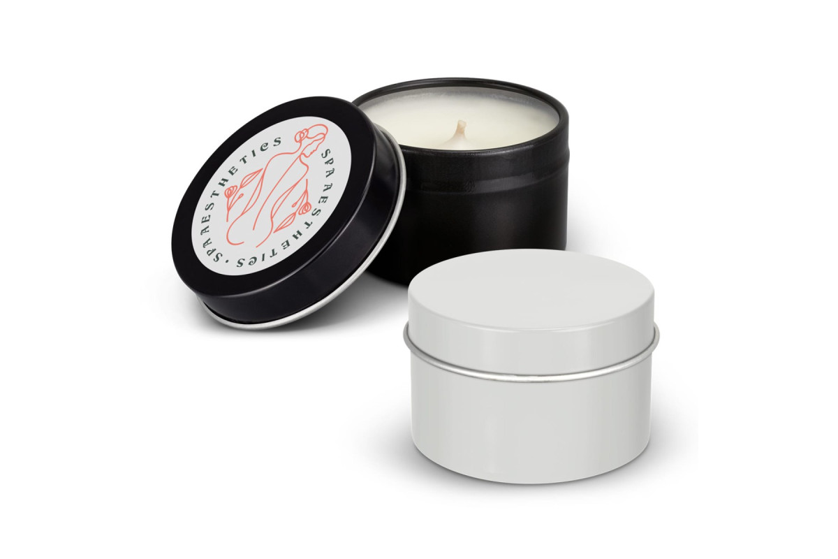 High-quality 35g aromatherapy vanilla-scented candle in handy travel tin with a secure push on lid. A warning and instructions label is located on the base of the tin.