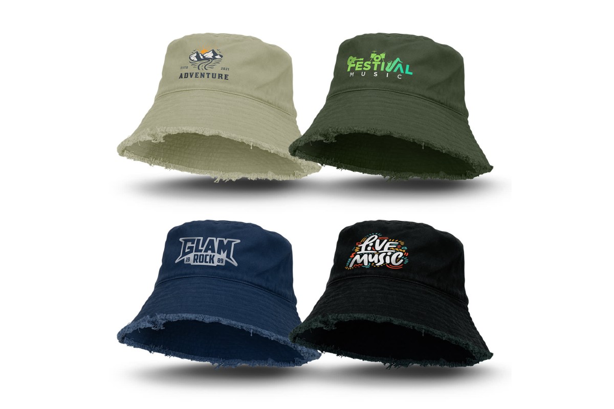 Stylish bucket hat made from 100% cotton twill featuring an edgy frayed finish and a built-in sweatband. It is available in two sizes, which will fit most people. Features: * Comfortable bucket hat with an edgy frayed finish * Made from 100% cotton twill * Built-in sweatband * Available in two sizes that will fit most